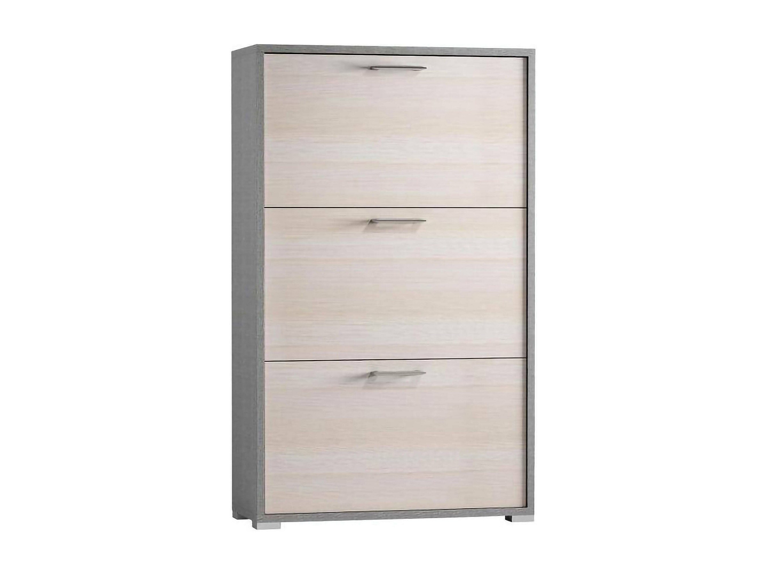 Schuhregal Peonia, Mehrzweck-Eingangsmöbel mit 3 Falttüren, Schuhschrank mit doppelter Tiefe, 100 % Made in Italy, 67 x 28 x 112 cm, Lärche,