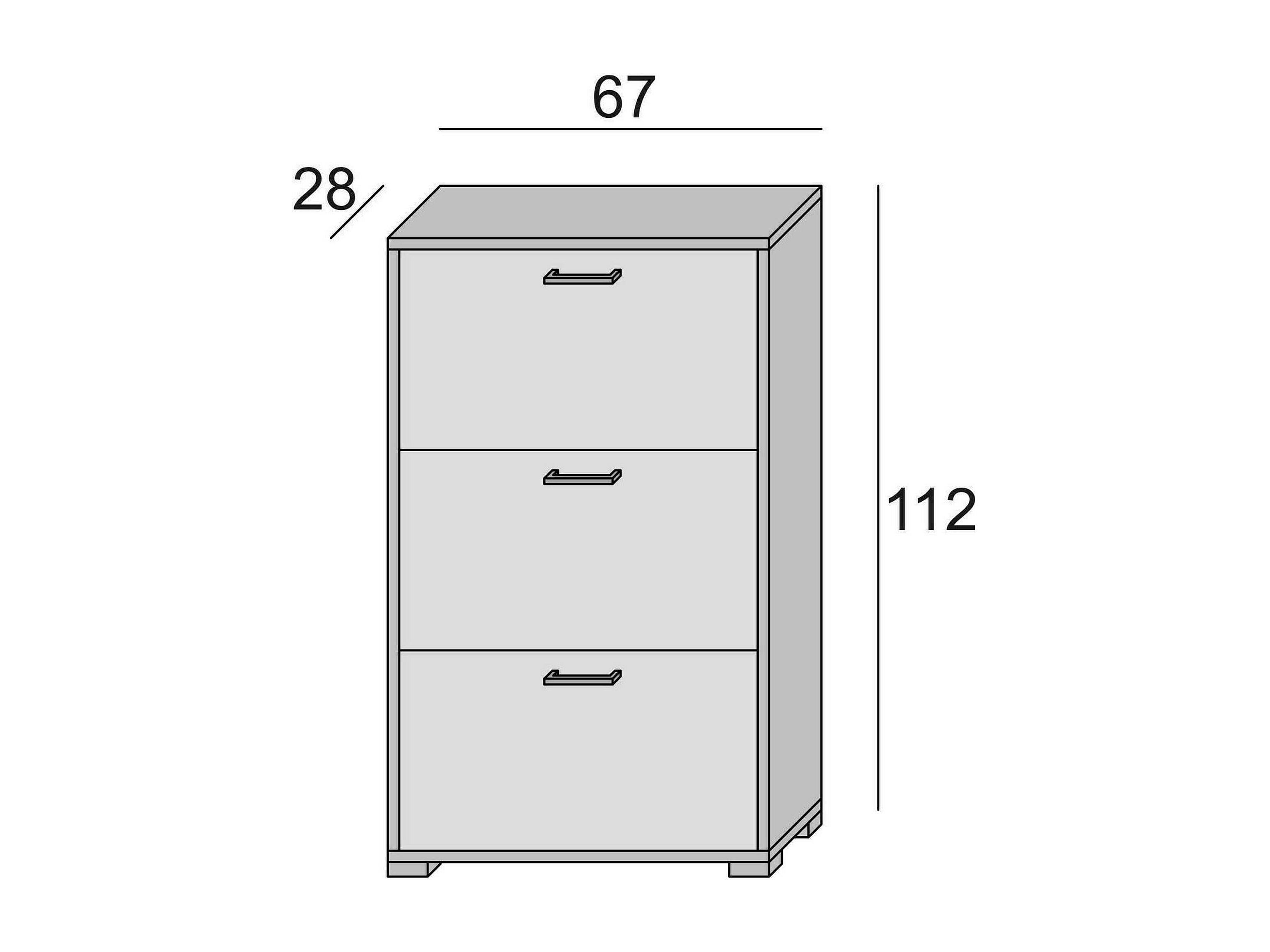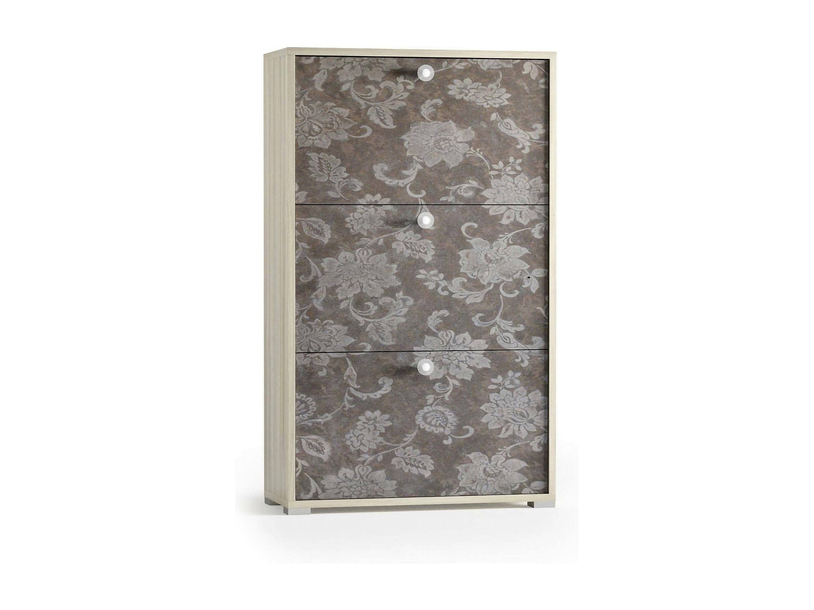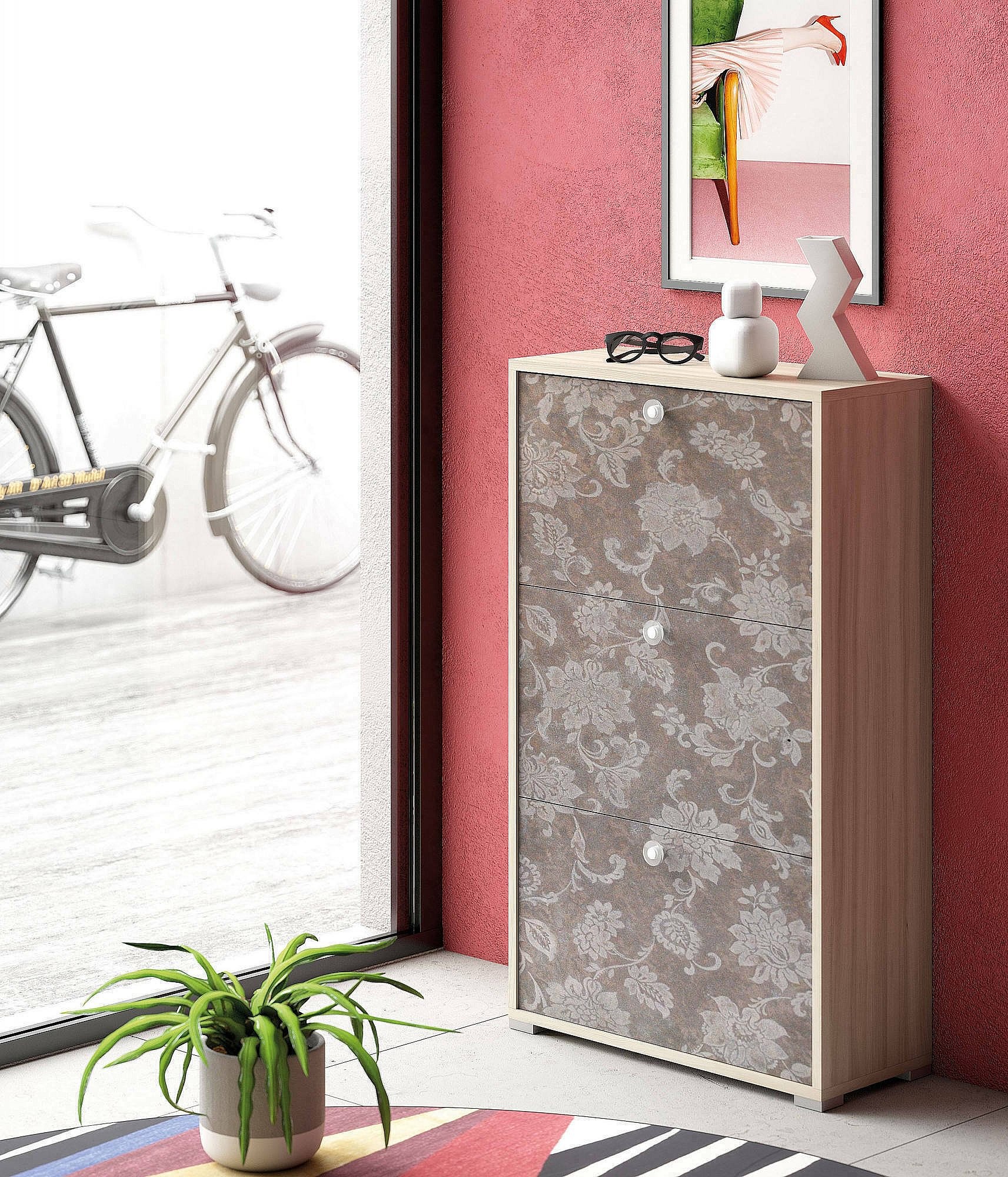 Schuhregal Peonia, Mehrzweck-Eingangsmöbel mit 3 Falttüren, Schuhschrank mit doppelter Tiefe, 100 % Made in Italy, 67 x 28 x 112 cm, Ulme und gemustert,