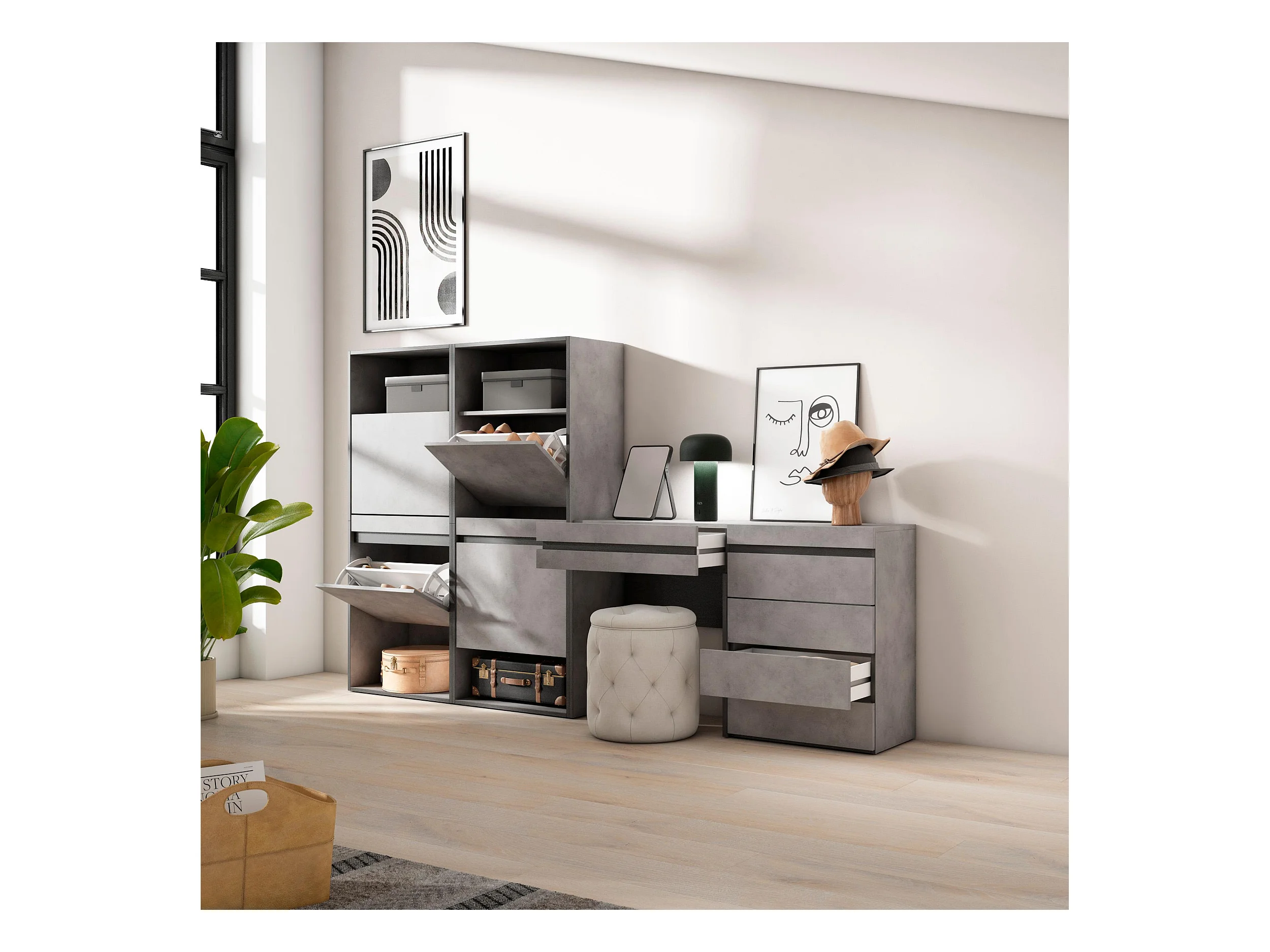 Schuhregal, Schuhschrank, 247x35x145cm, Für Schlafzimmer, Kommode mit Schubladen, Schminktisch, Zement