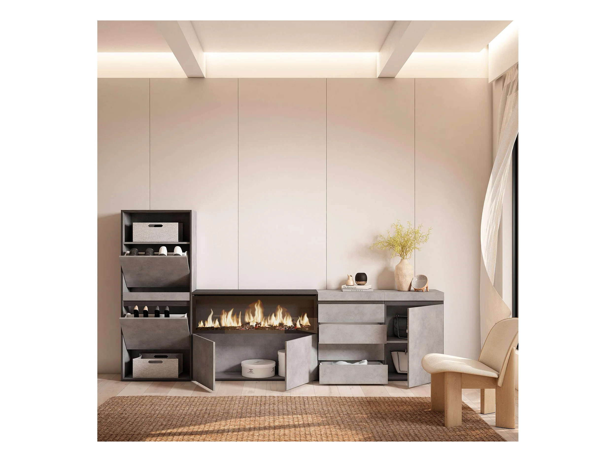 Schuhregal, Schuhschrank, 274x35x145cm, Für Schlafzimmer, Elektrokamin XXL, Kommode mit Schubladen, Zement