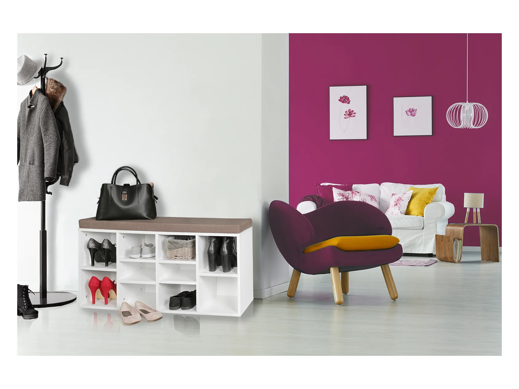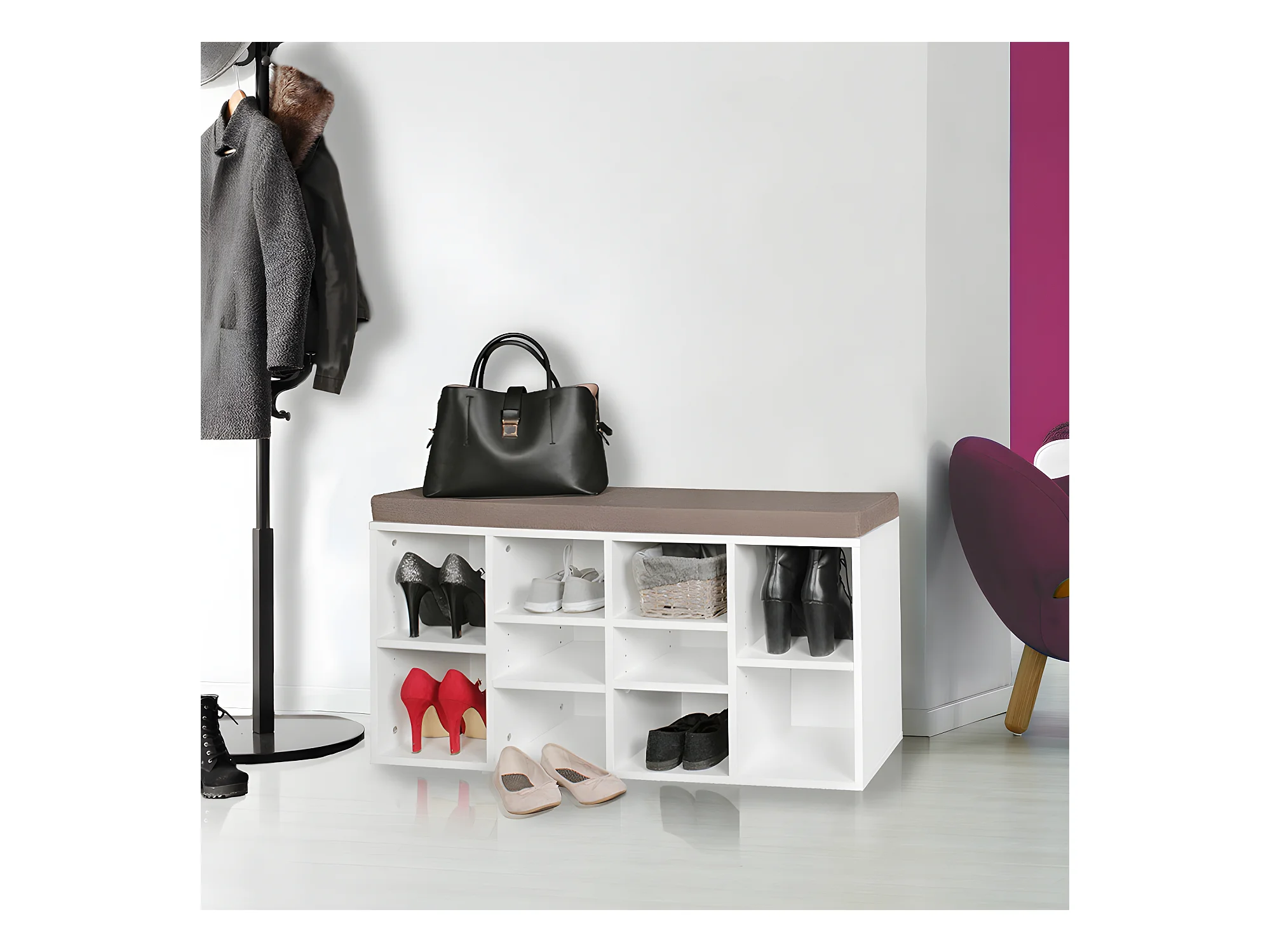 Schuhschrank 10 Schuhe Schuhbank Schrank Regal Auflage Sitzbank Flur Polster
