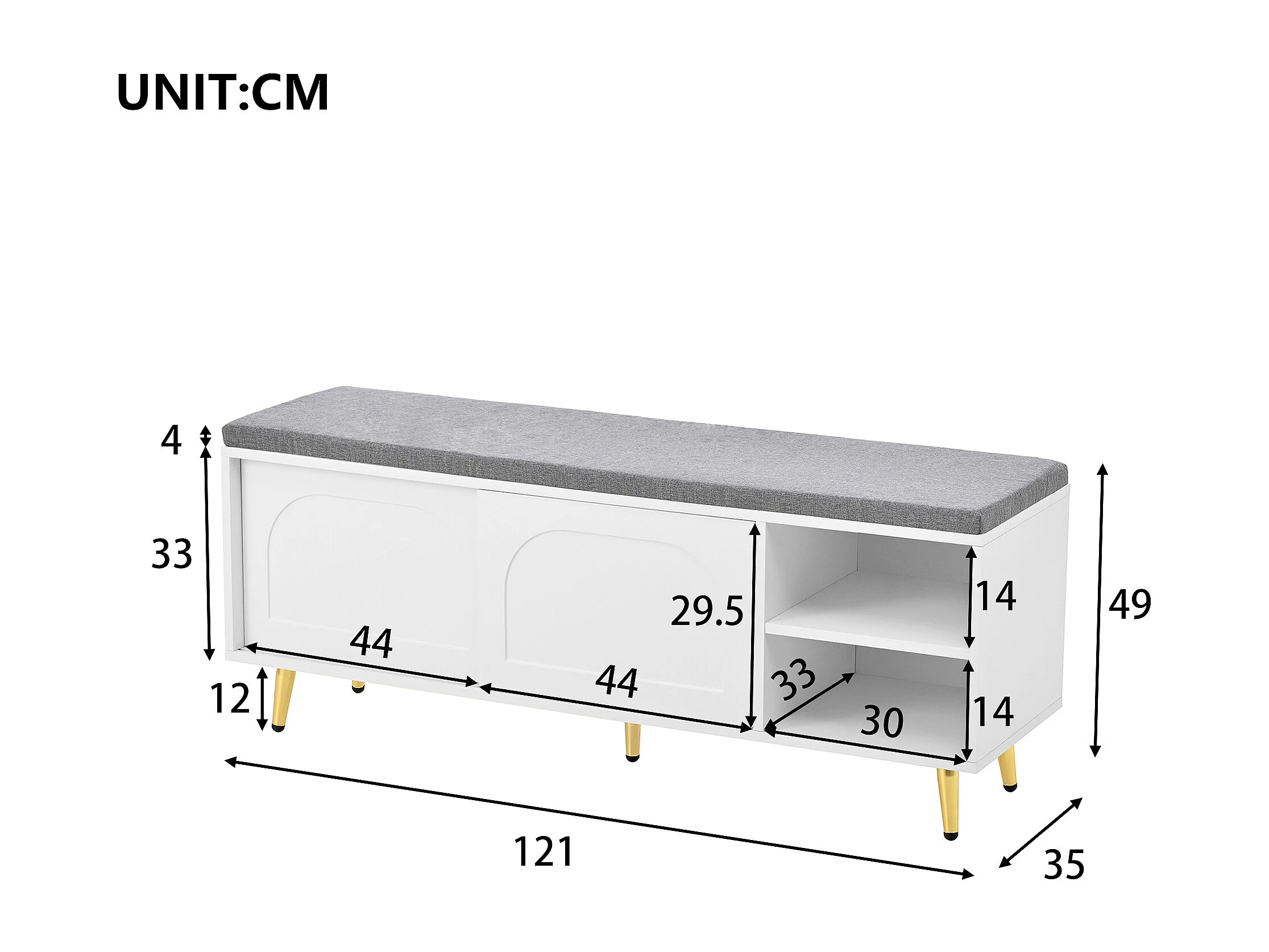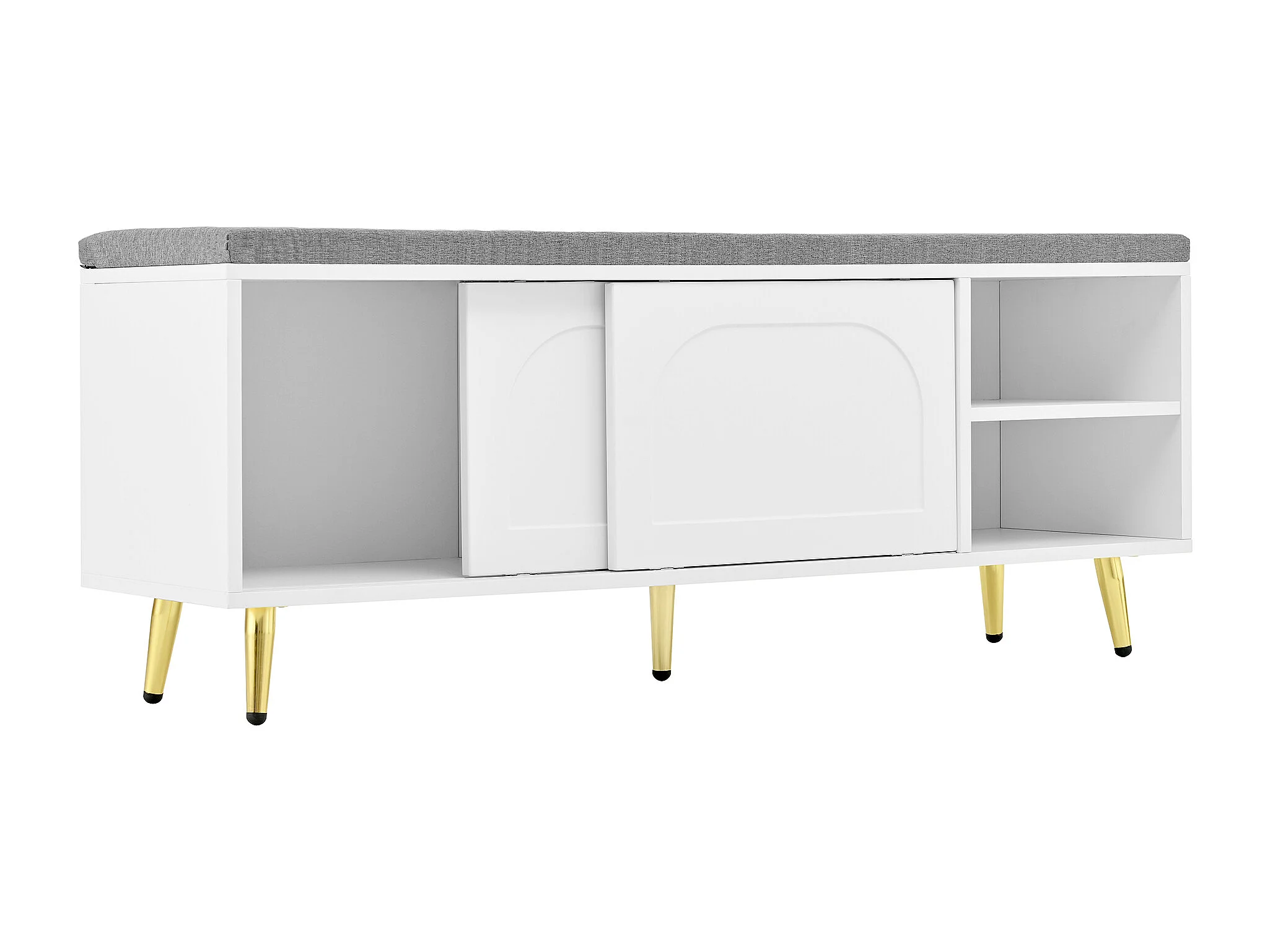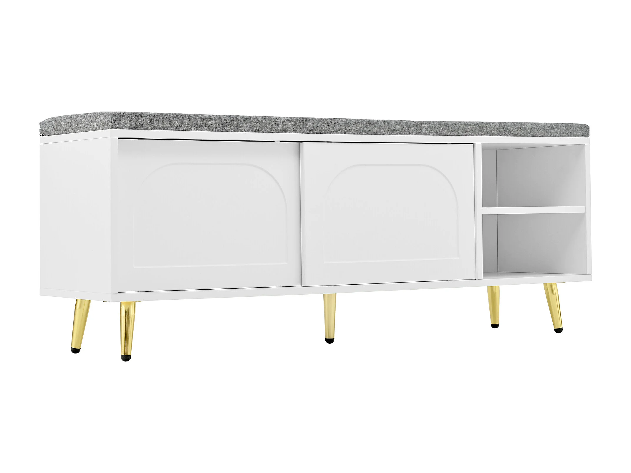 Schuhschrank 121x35x49cm - mit Sitzkissen - Schiebetüren und offene Ablagefächer - weiß