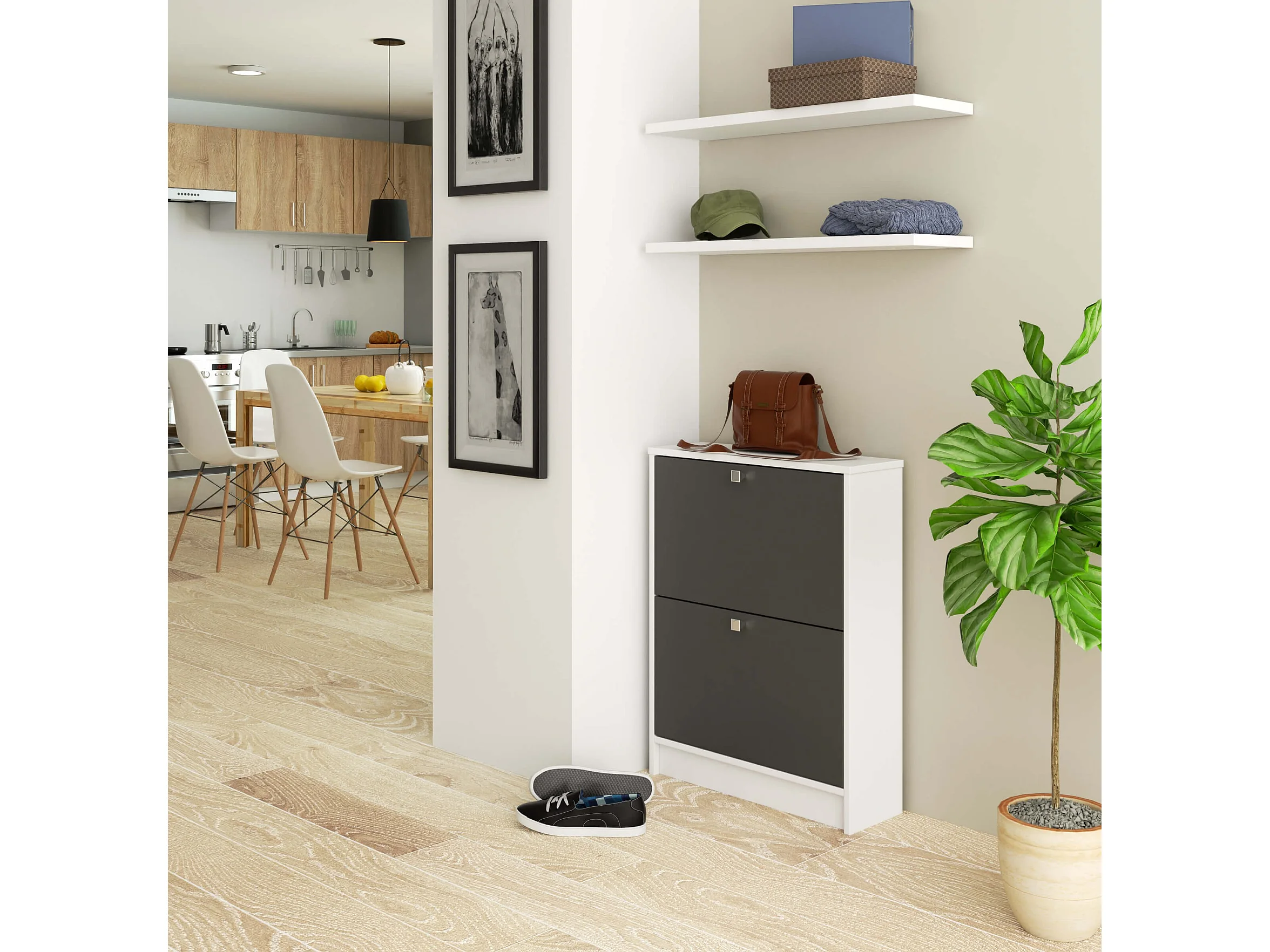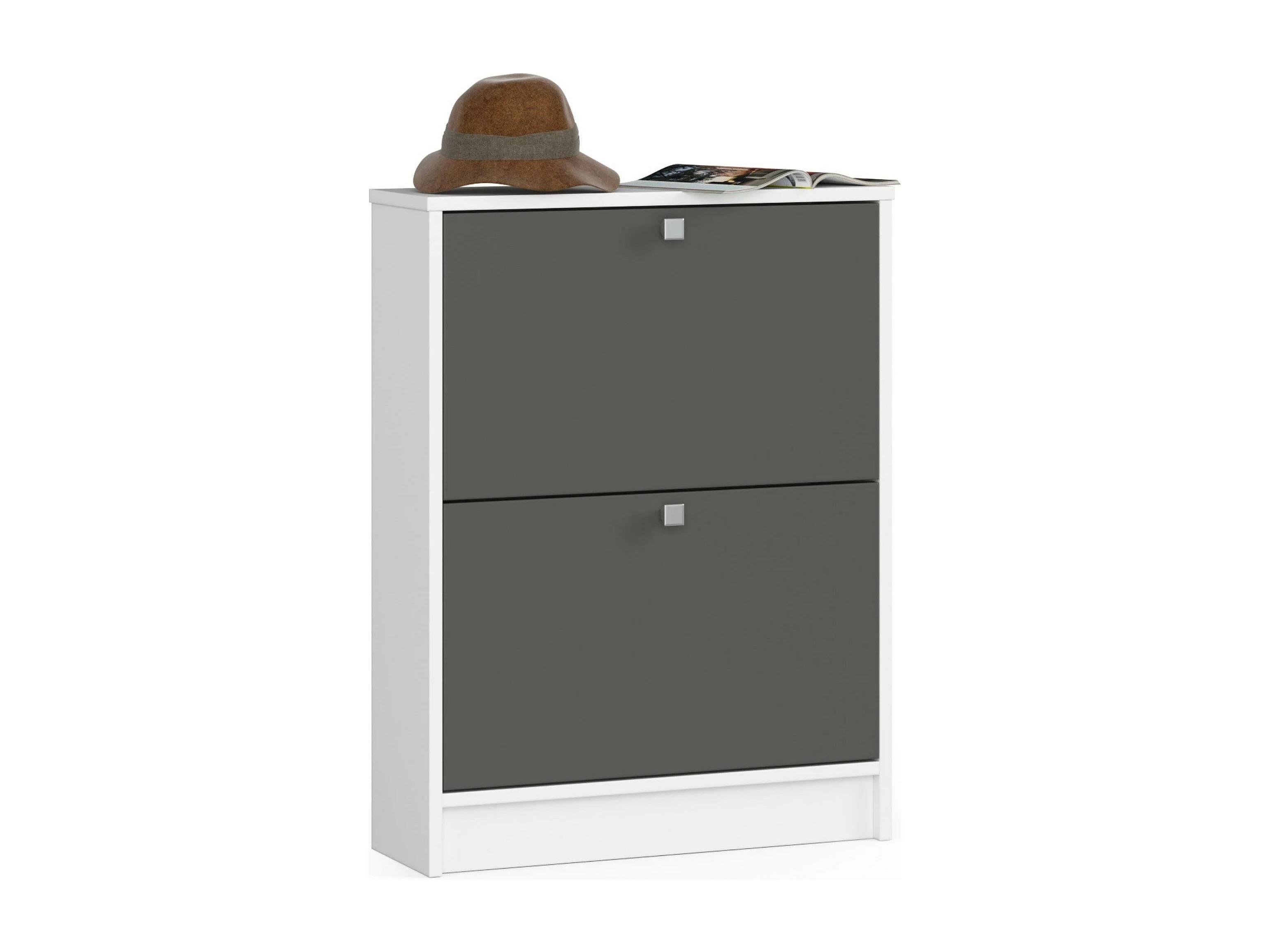 Schuhschrank AKORD in der Farbe Weiß mit 2 Schuhkipper Front Graphitgrau B60 x H80 x T20 cm Gewicht 16,9 kg