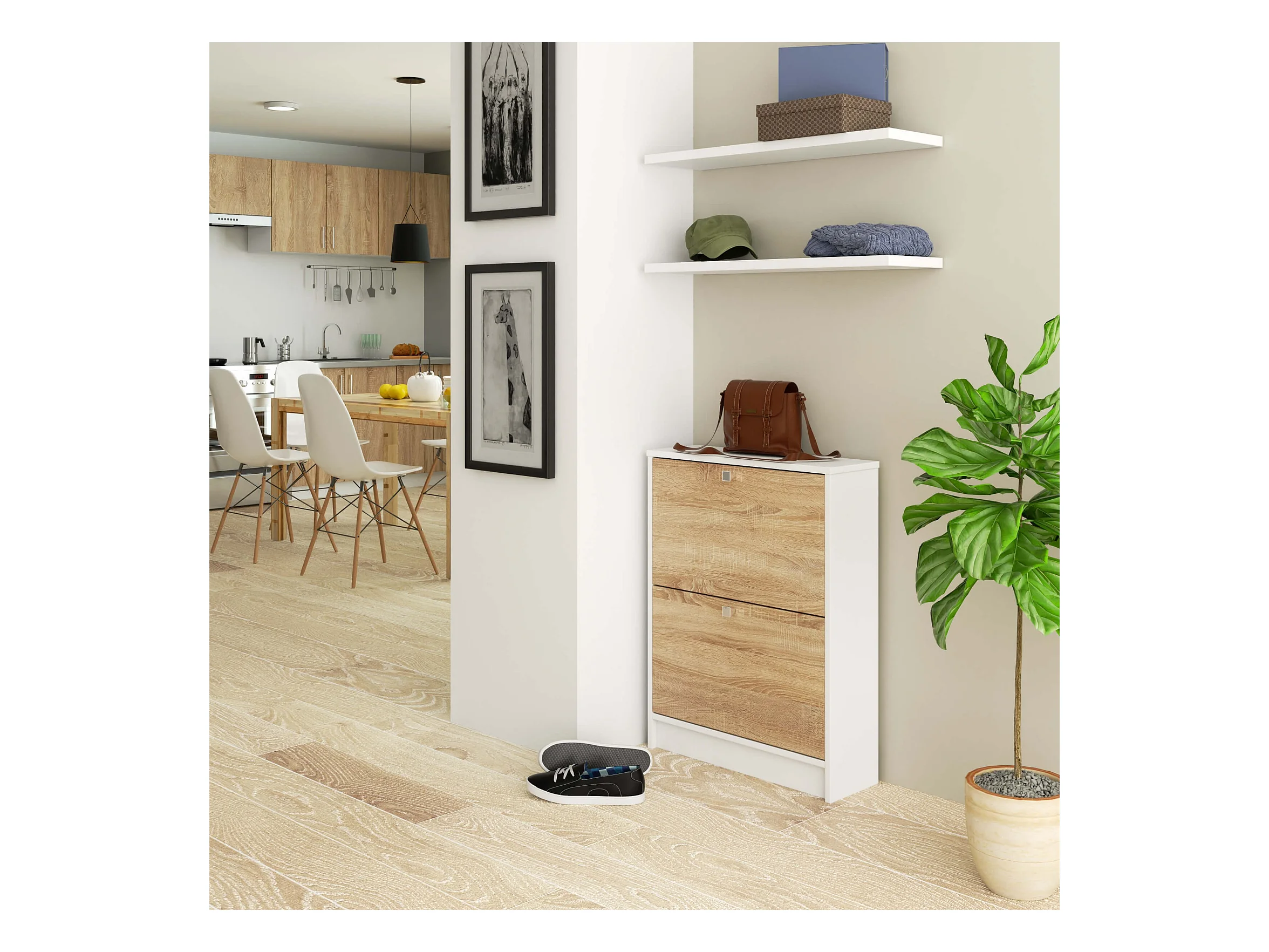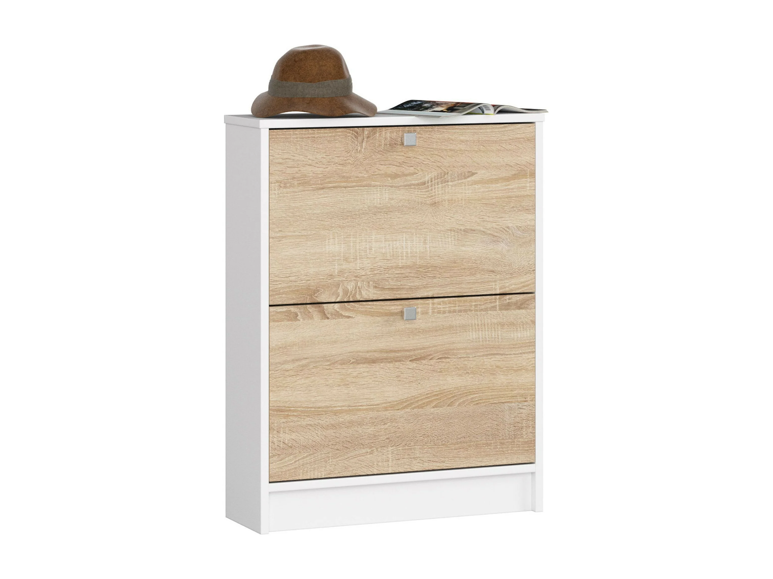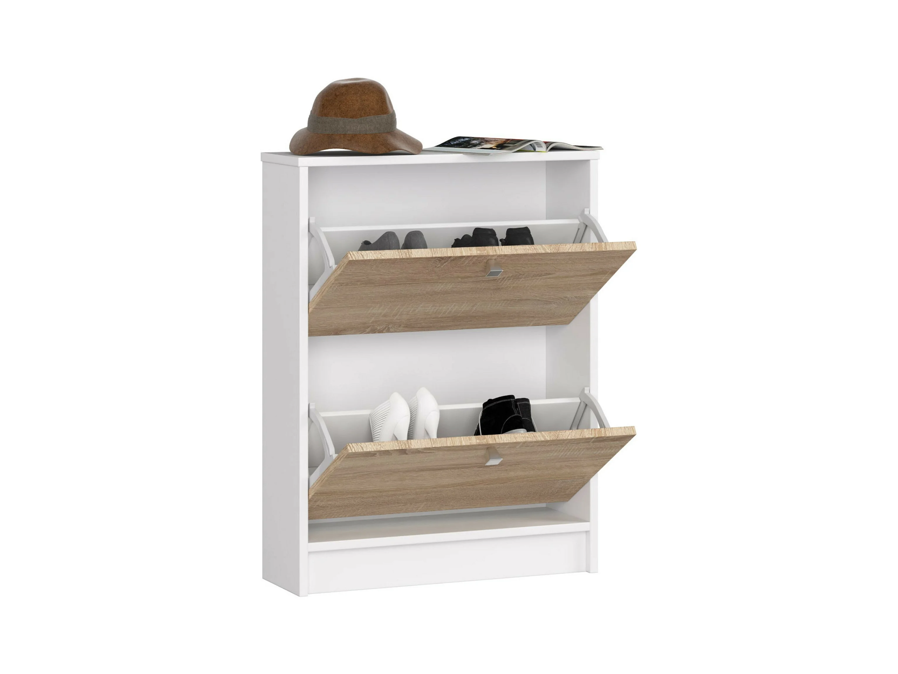 Schuhschrank AKORD in der Farbe Weiß mit 2 Schuhkipper Front Sonoma-Eiche B60 x H80 x T20 cm Gewicht 16,9 kg