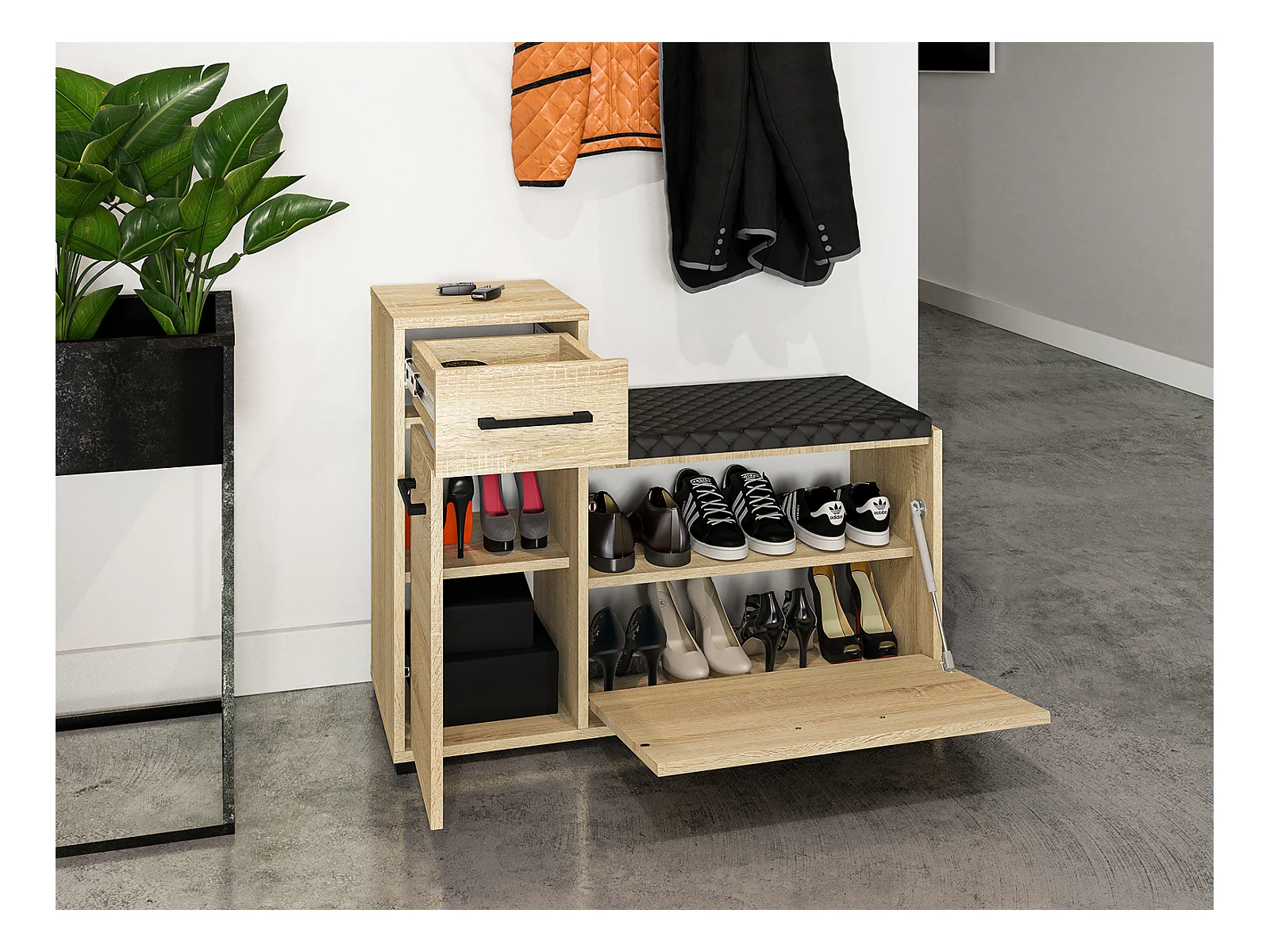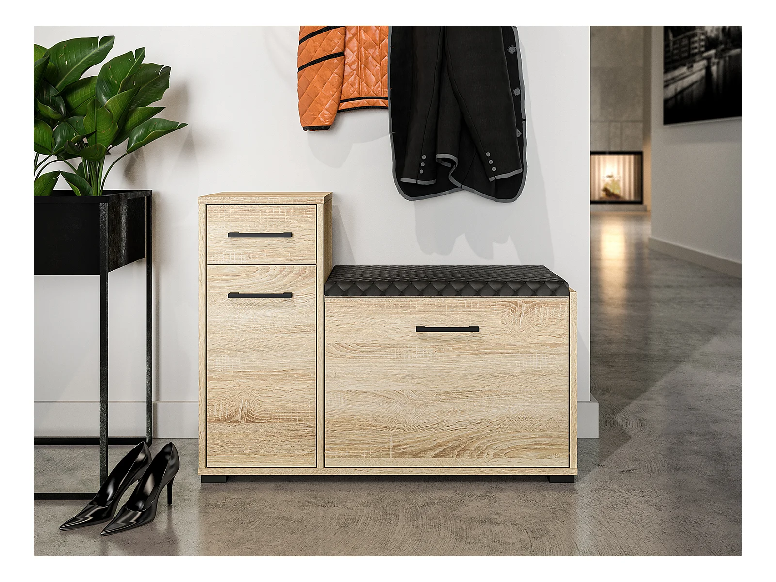 SCHUHSCHRANK Caro Sonoma Eiche hell / schwarz 90 / 34 / 68cm