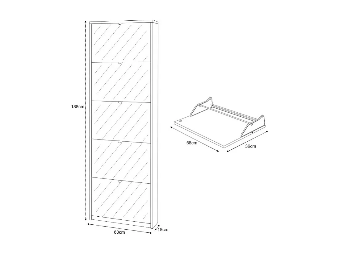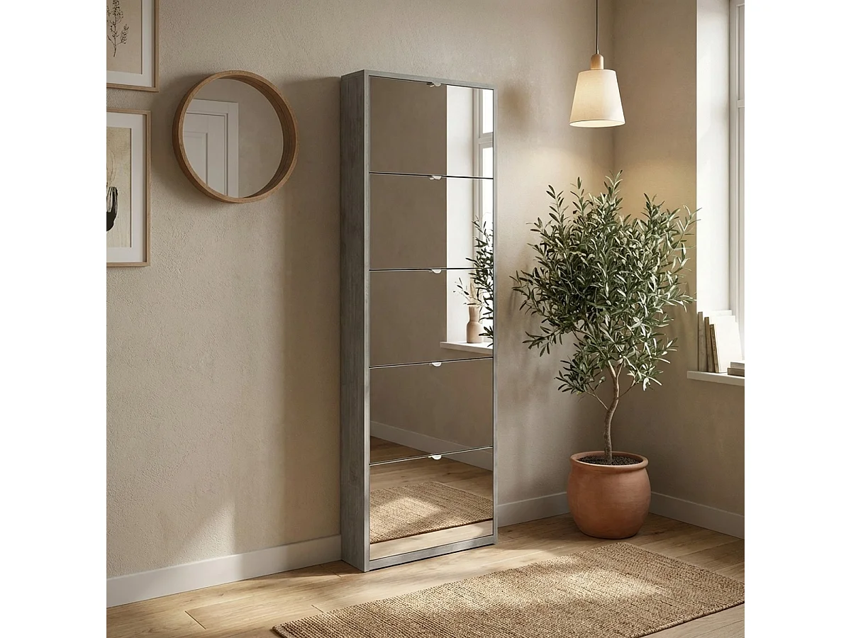 Schuhschrank Darcy mit 5 Türen und Spiegel, modernes Design für 12 Paar Schuhe - Grau