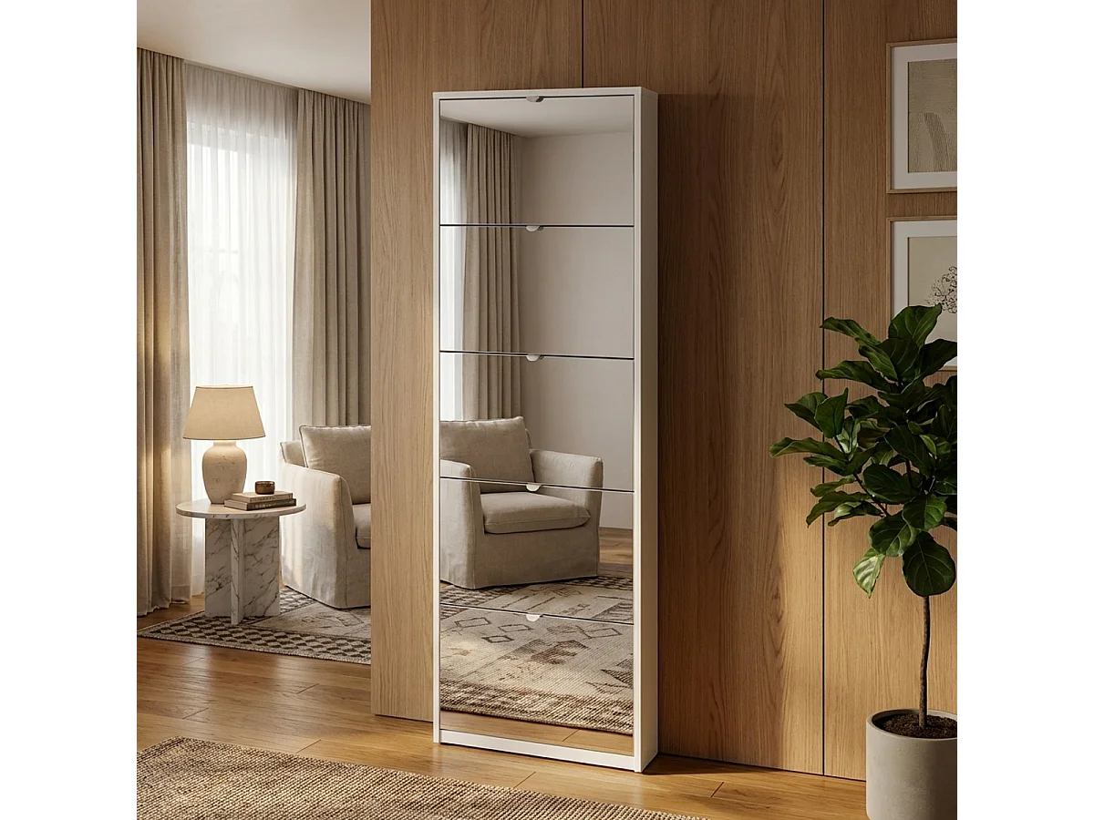 Schuhschrank Darcy mit 5 Türen und Spiegel, modernes Design für 12 Paar Schuhe - Weiß Shabby