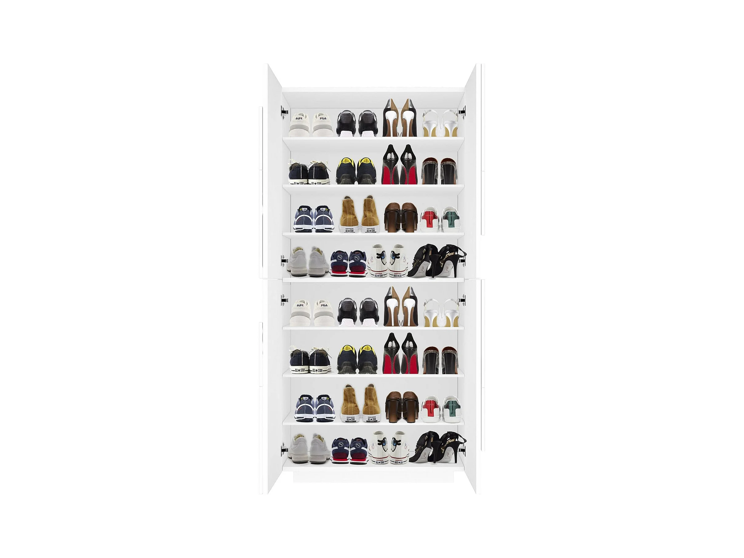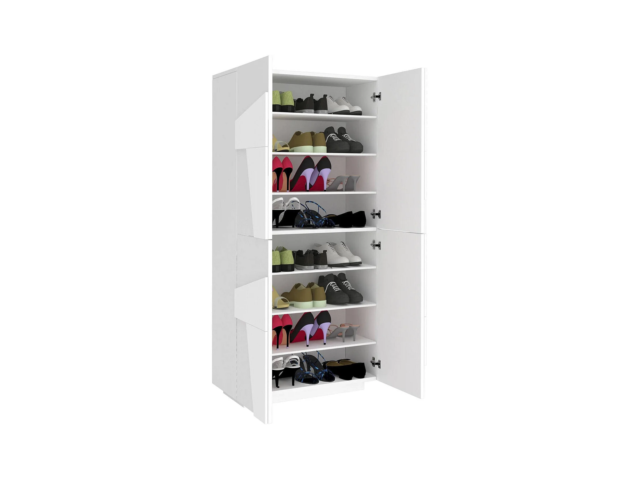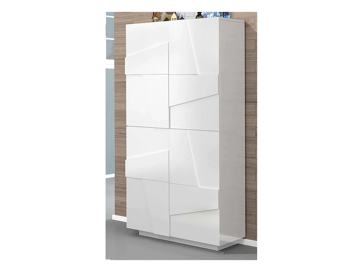 Schuhschrank Dlerd, Mehrzweckschrank mit 4 Flügeltüren, Eingangsschuhregal, 100 % Made in Italy, cm 81x38h167, glänzend weiß