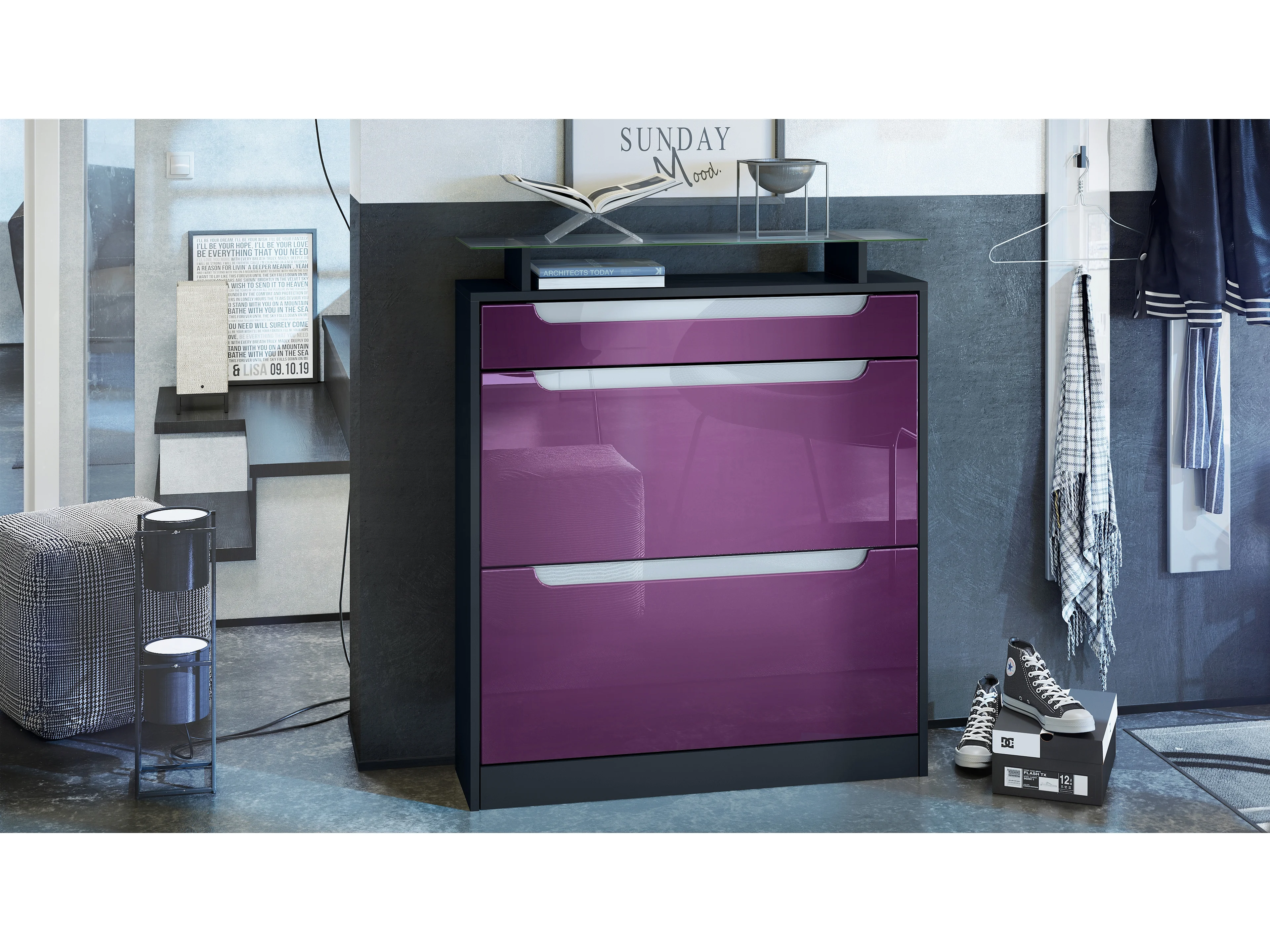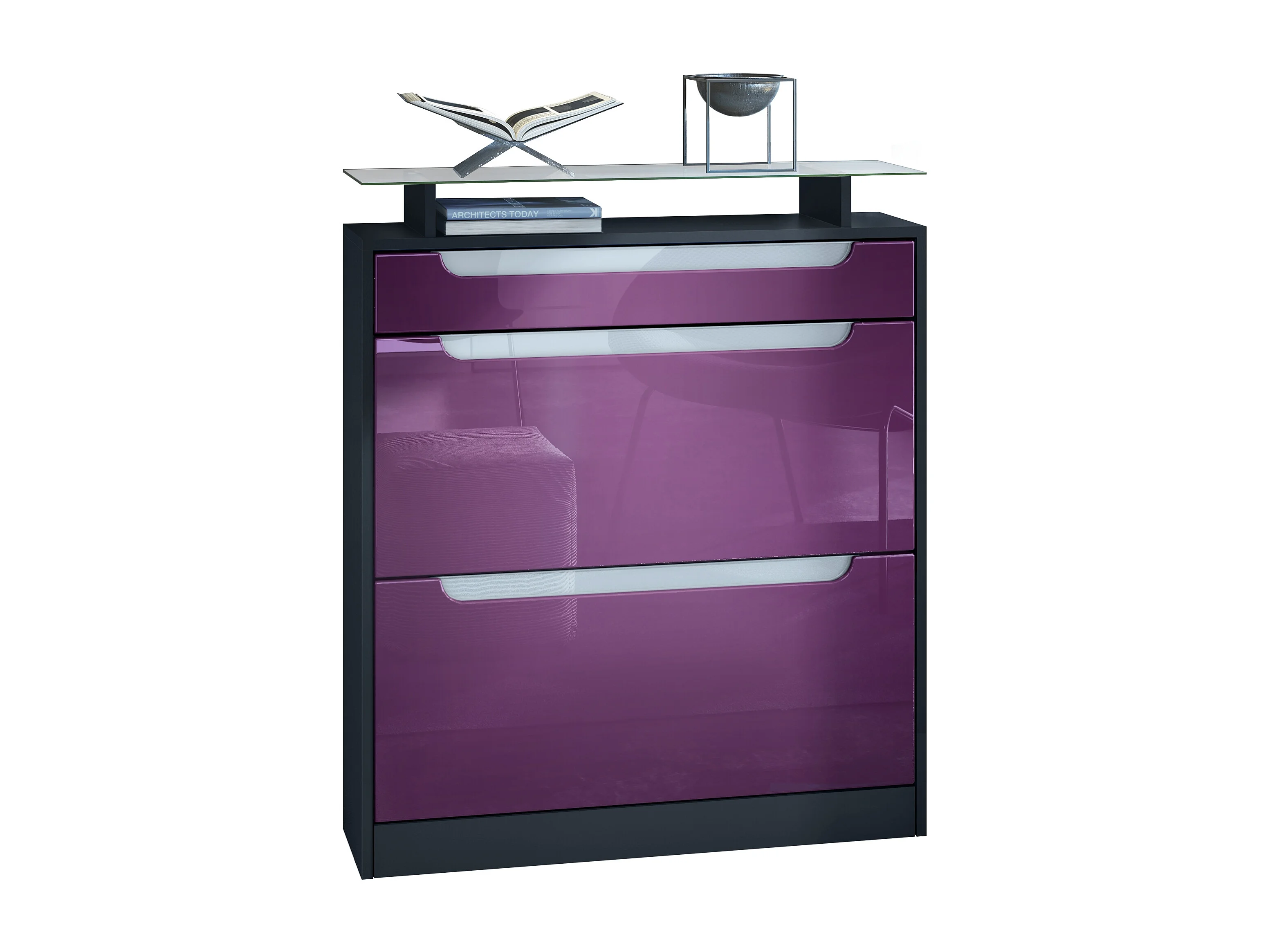 SCHUHSCHRANK Fiesta Brombeer Hochglanz / Weiß Hochglanz