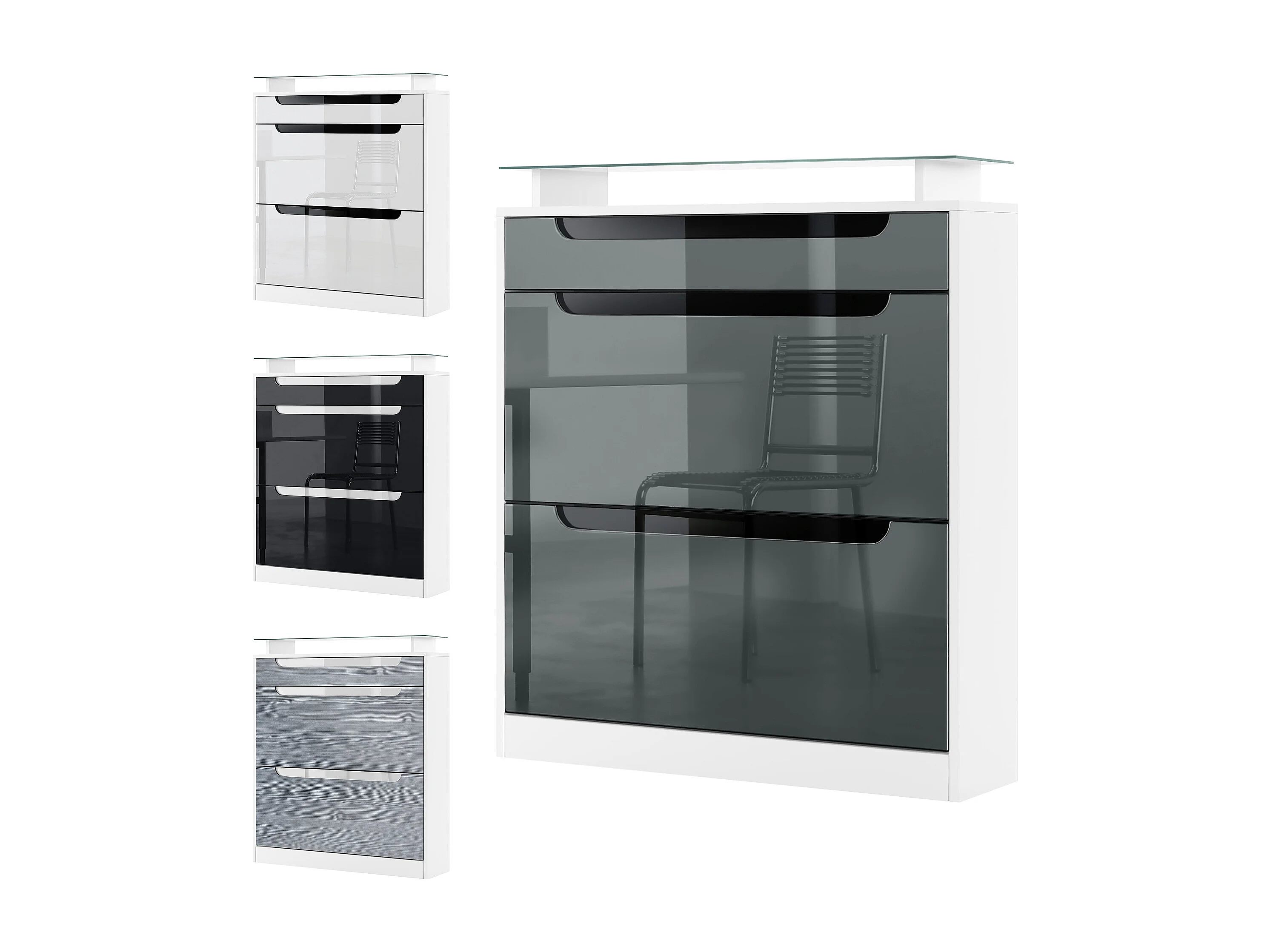 SCHUHSCHRANK Fiesta Creme Hochglanz / Schwarz Hochglanz