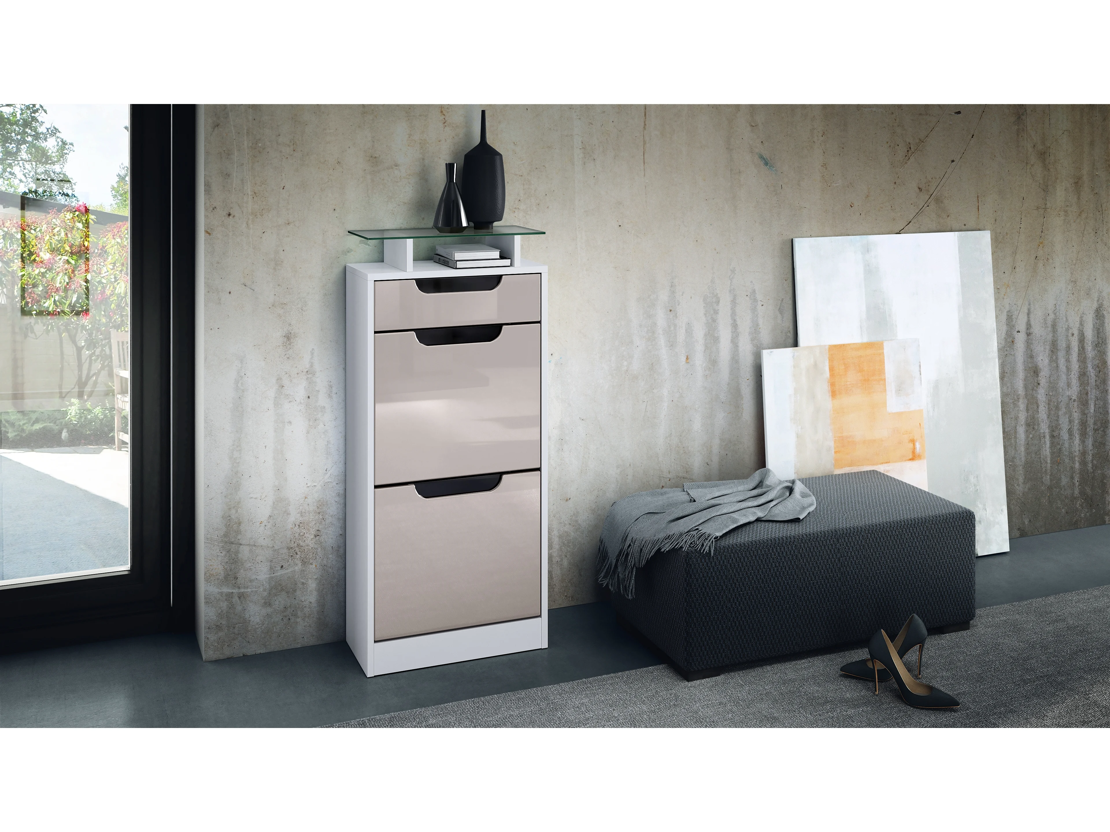 SCHUHSCHRANK Fiesta Sandgrau Hochglanz / Schwarz Hochglanz