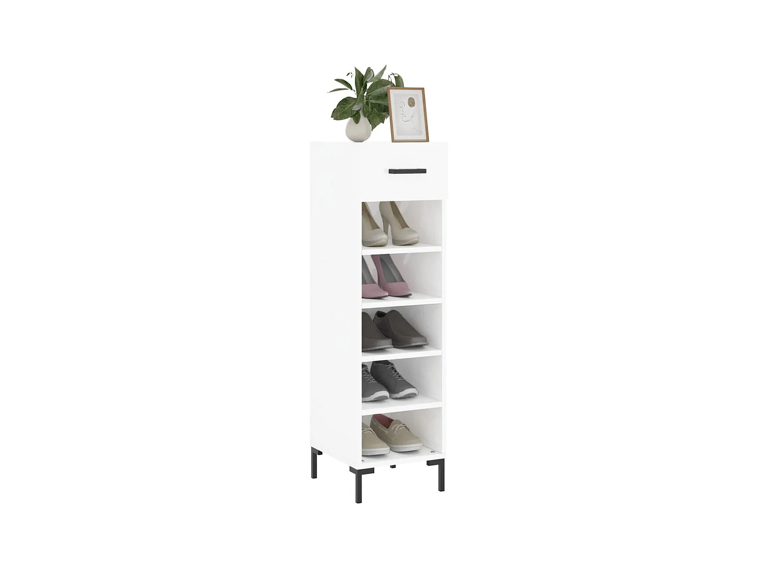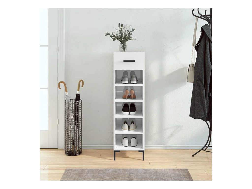 Schuhschrank, glänzend weiß, 30 x 35 x 105 cm, Holzwerkstoff
