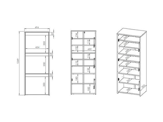 SCHUHSCHRANK Hyga Pinie weiß / anthrazit 50 / 34 / 125cm