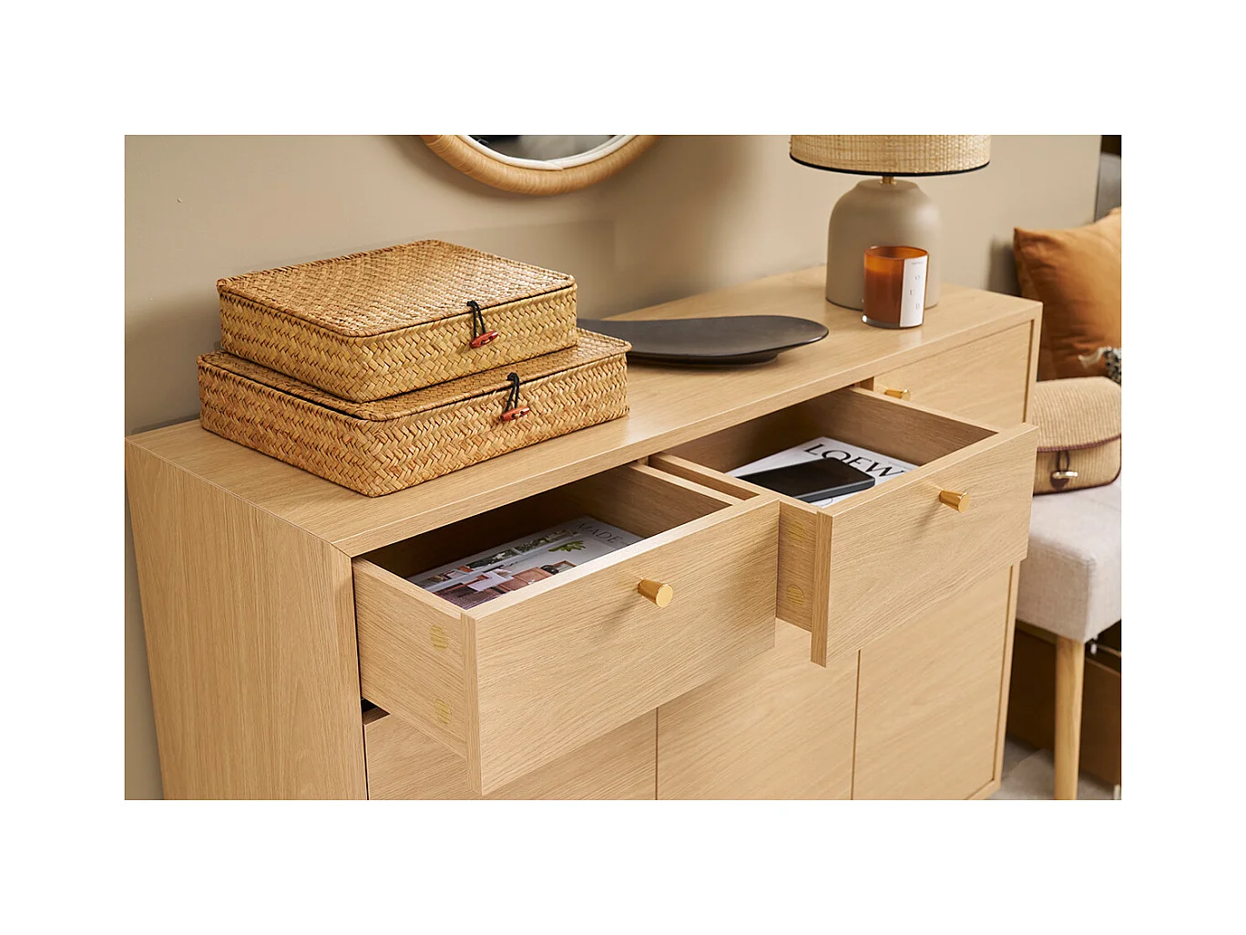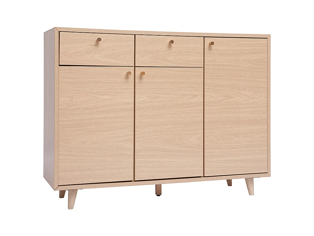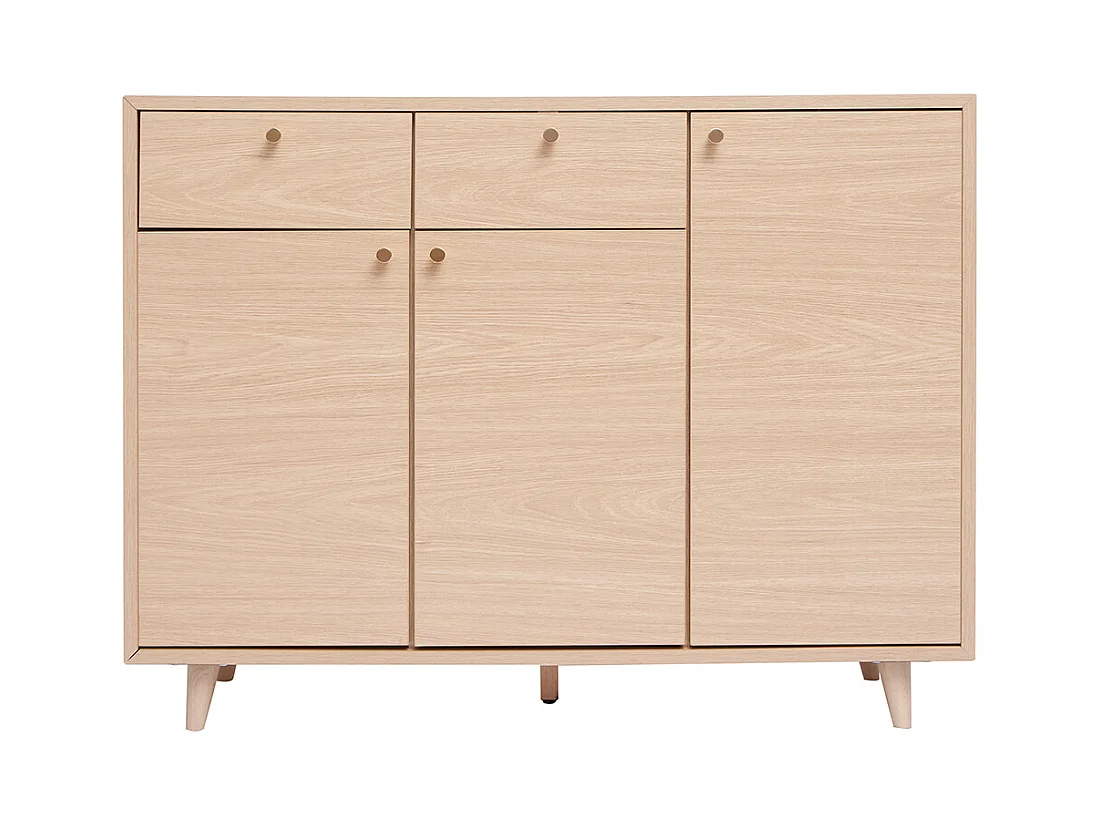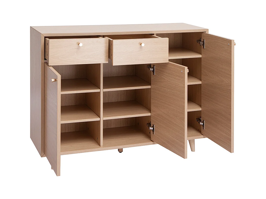 Schuhschrank in hellem Holzdekor mit Eichenfurnier und goldfarbenem Metall B110 cm SILVESTRE