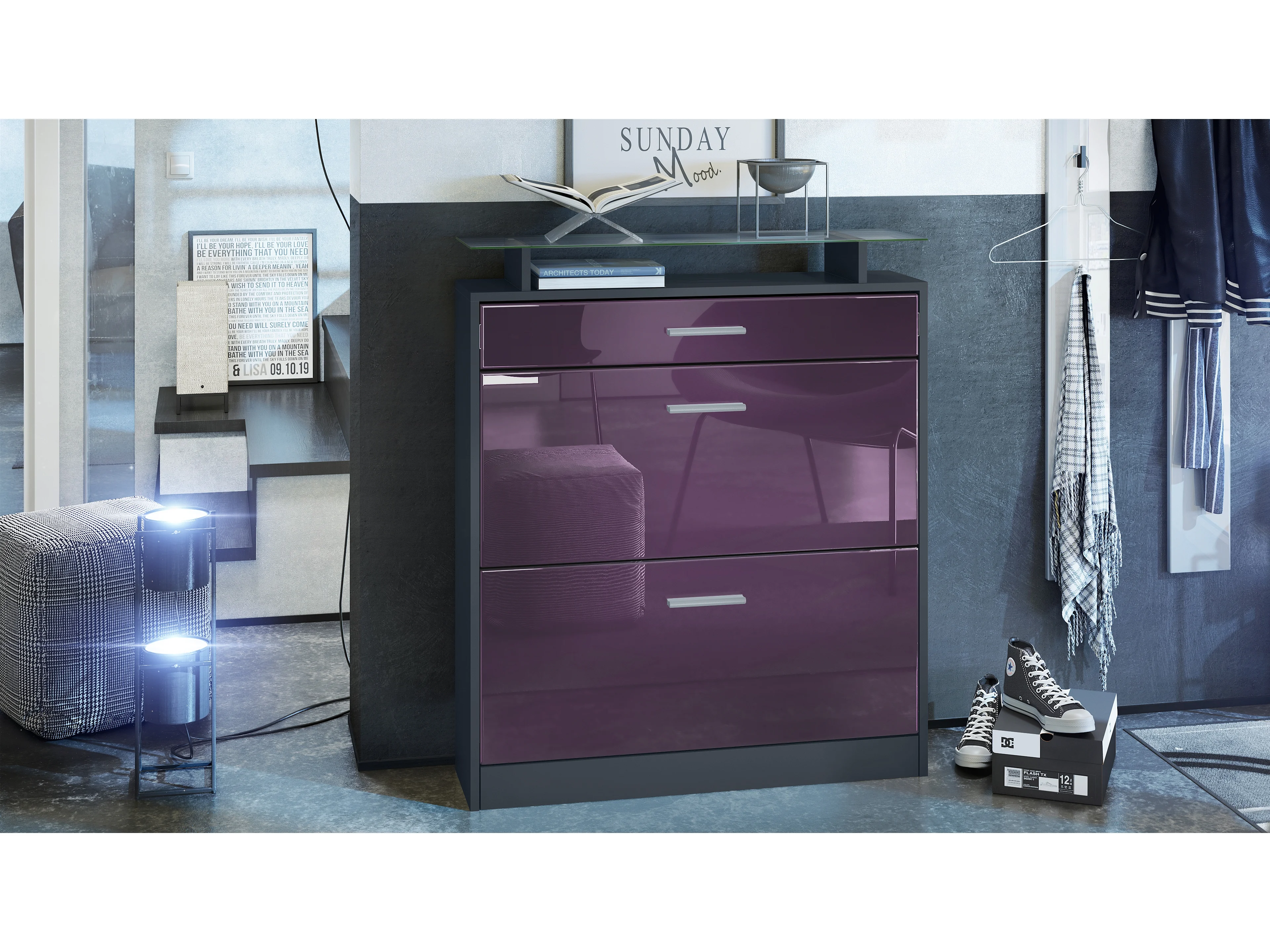SCHUHSCHRANK Loret Fronten in Brombeer Hochglanz