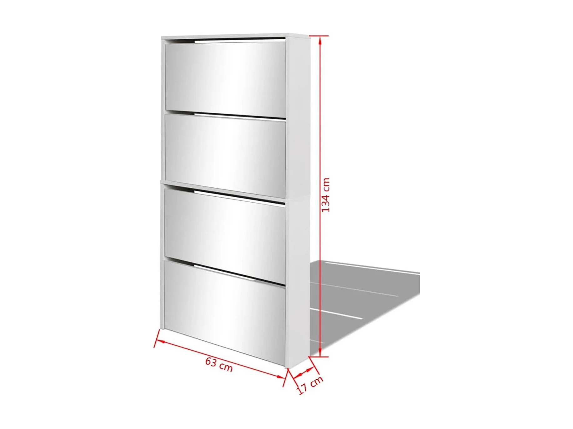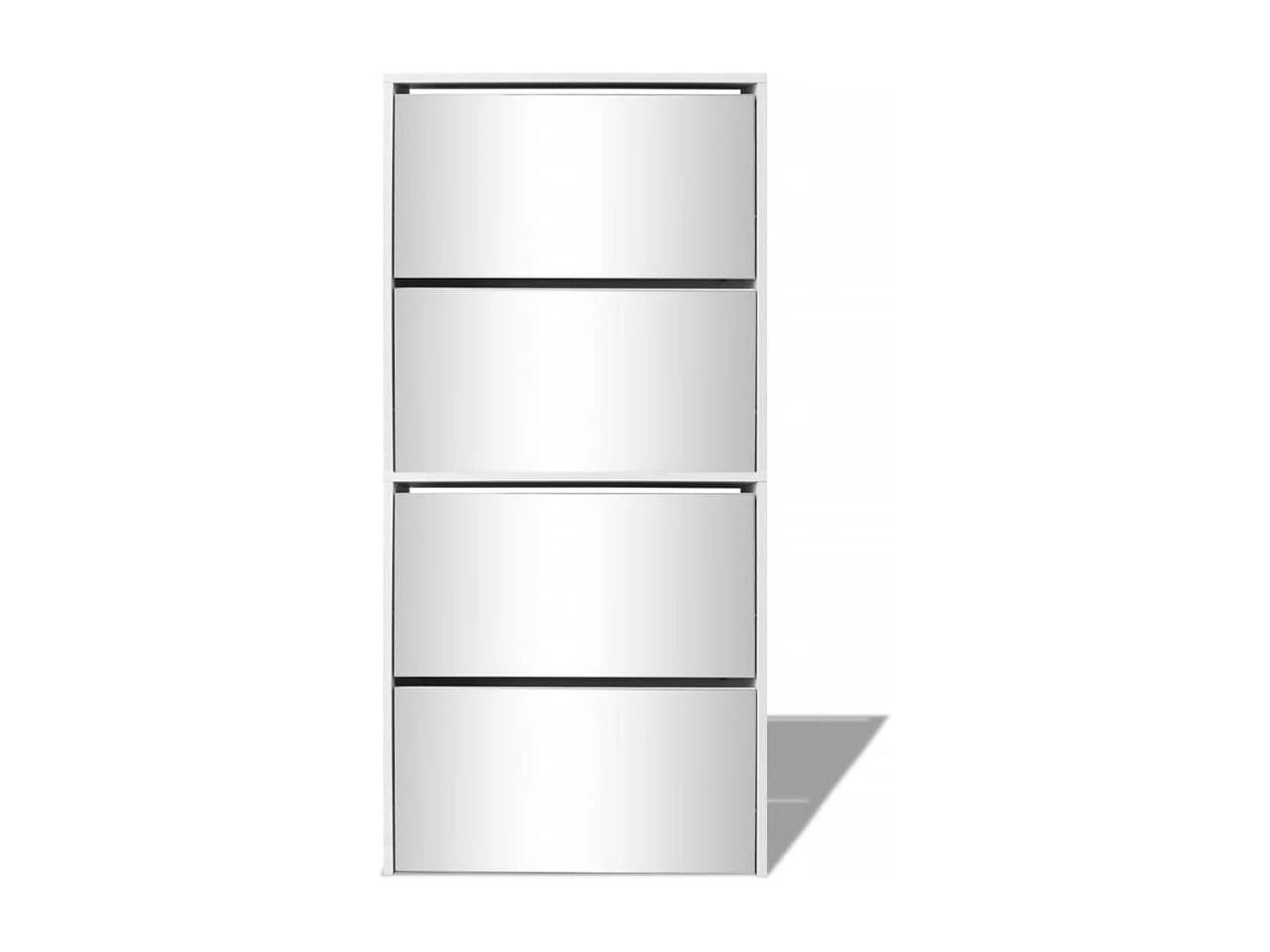 Schuhschrank mit 4 Fächern Spiegel Weiß 63×17×134 cm