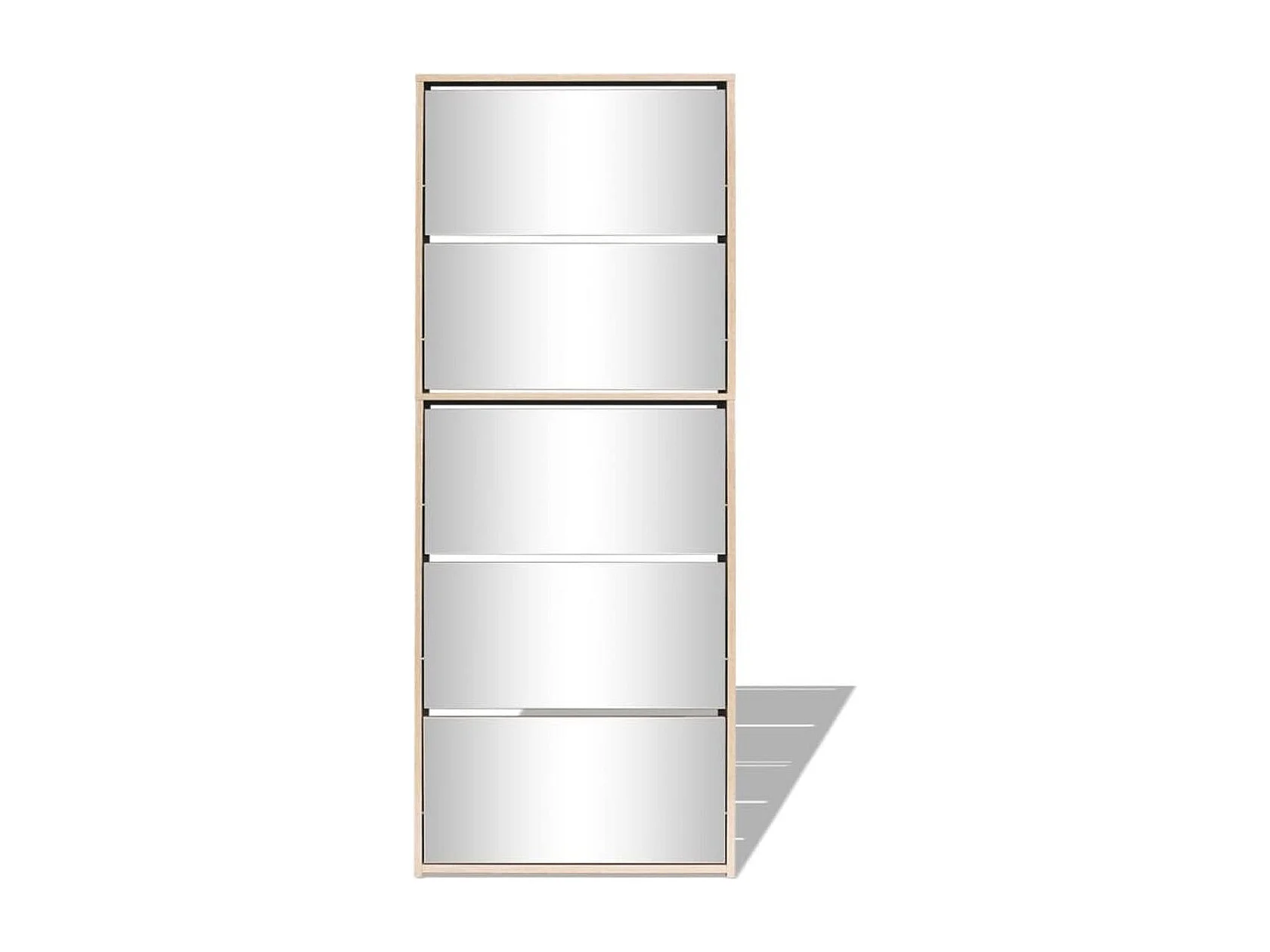 Schuhschrank mit 5 Fächern Spiegel Eiche 63x17x169,5 cm