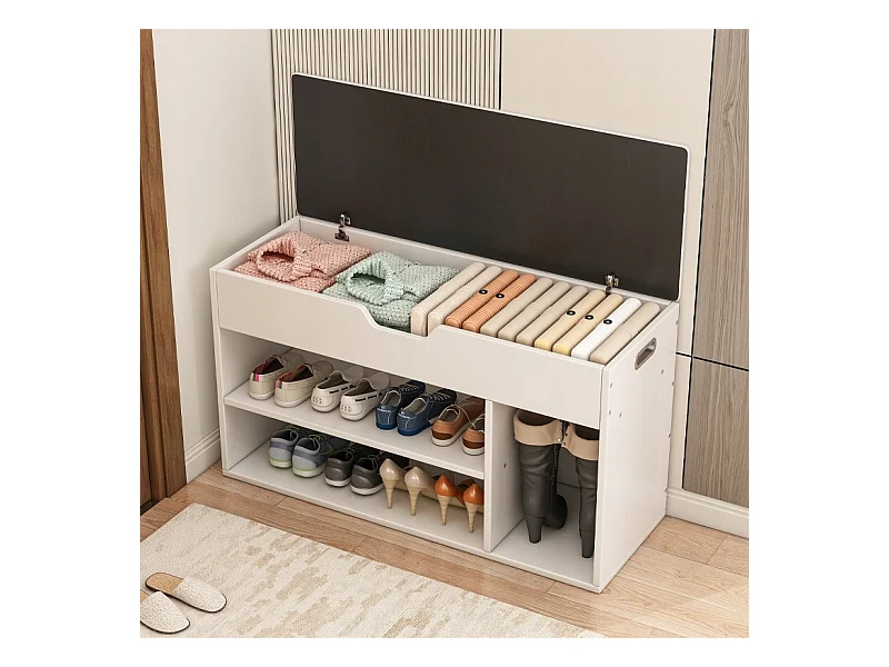 Schuhschrank mit Sitz Holzablage 3 Fachböden offen weiß 80cm