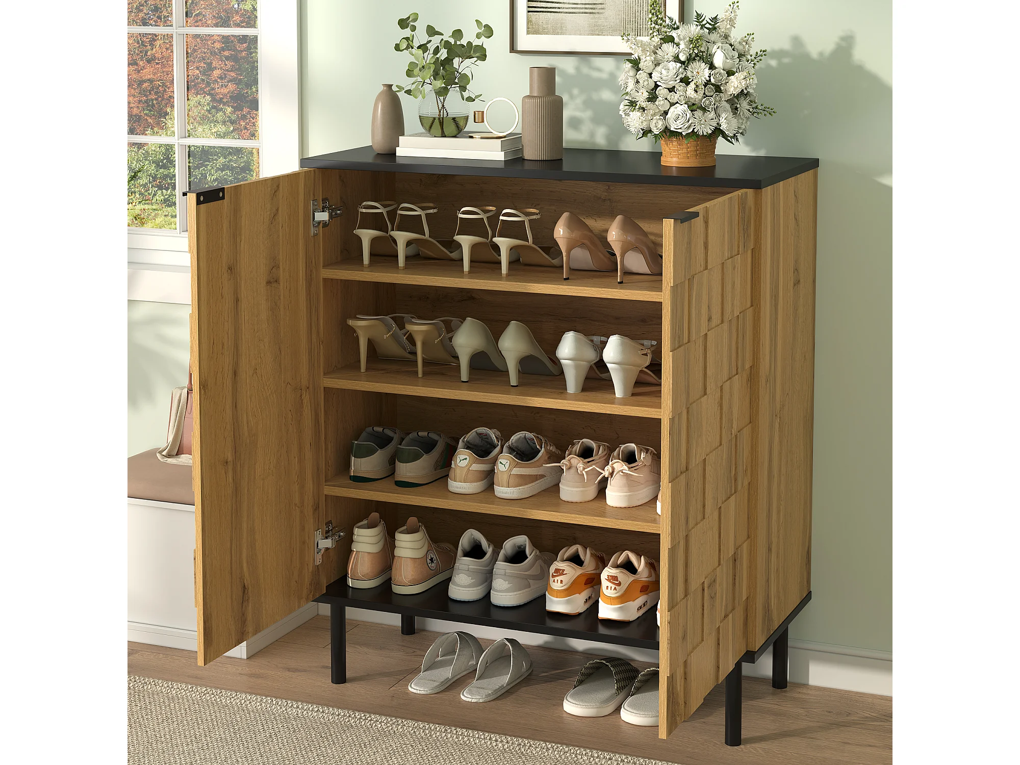 Schuhschrank Mosaik 80x35x91,5 cm - 2 Türen - Außenseite in Holzoptik - Metallfüße - Höhenverstellbare Einlegeböden - Natur