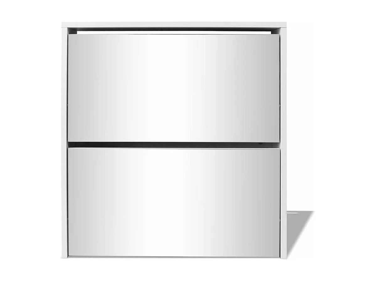 Schuhschrank Schuhregal mit 2 Fächern Spiegel Weiß 63x17x67 cm -gkd42029