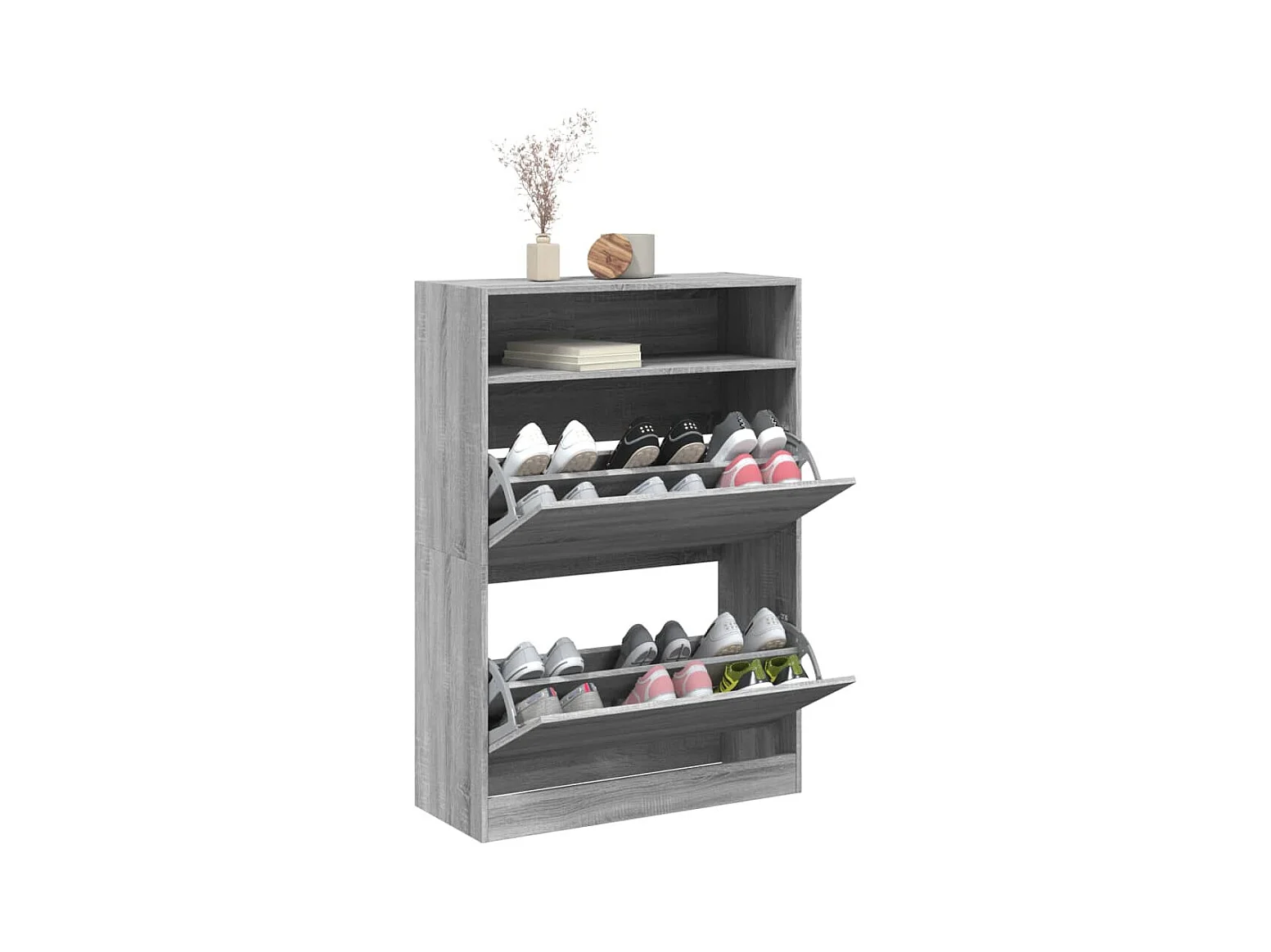Schuhschrank Schuhregal mit 2 Klappen Grau Sonoma 80x34x116 cm -gkd97098