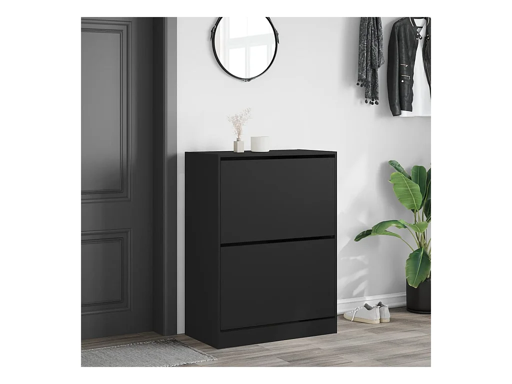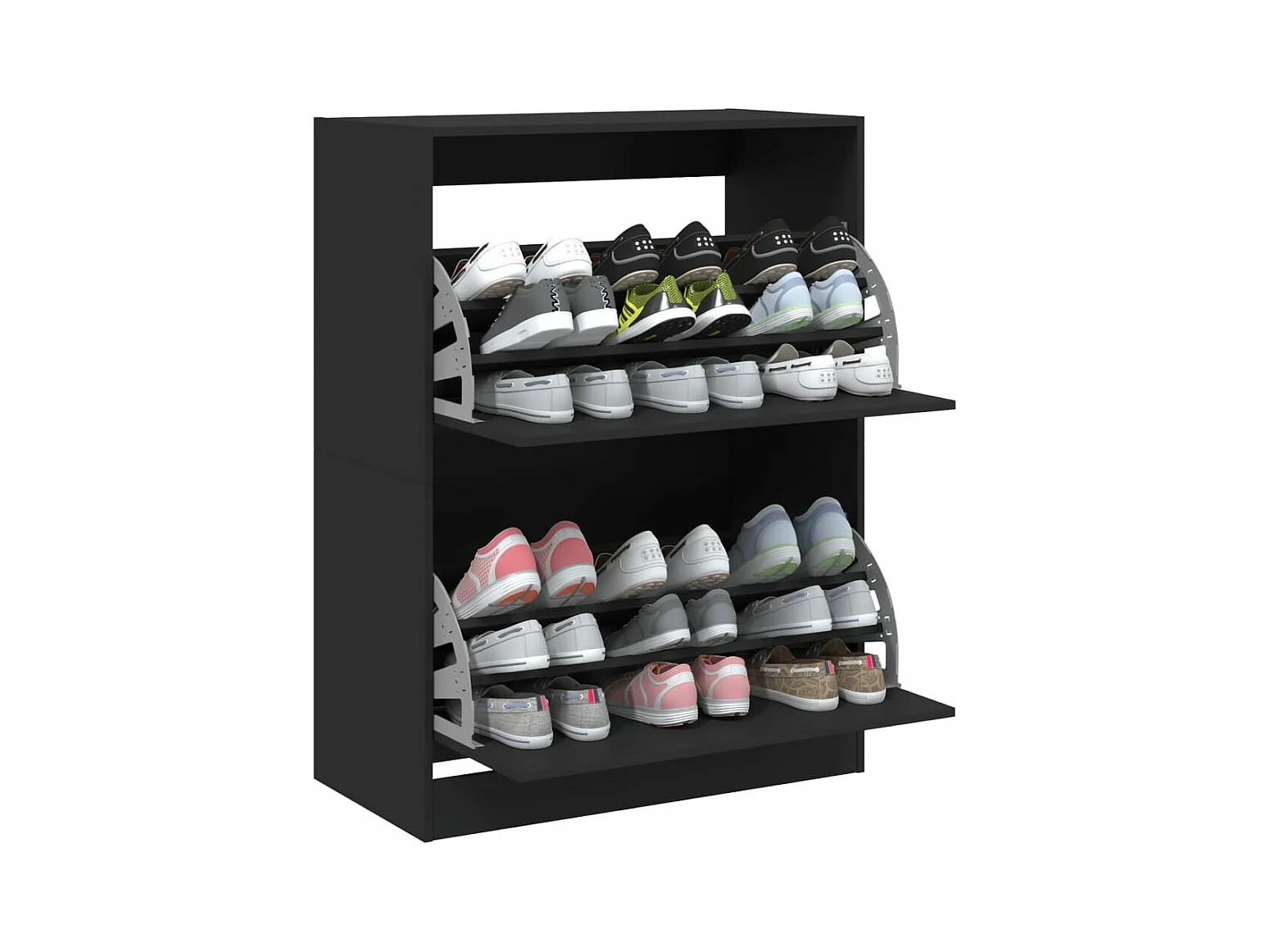 Schuhschrank Schuhregal mit 2 Klappen Schwarz 80x42x108 cm -gkd42925