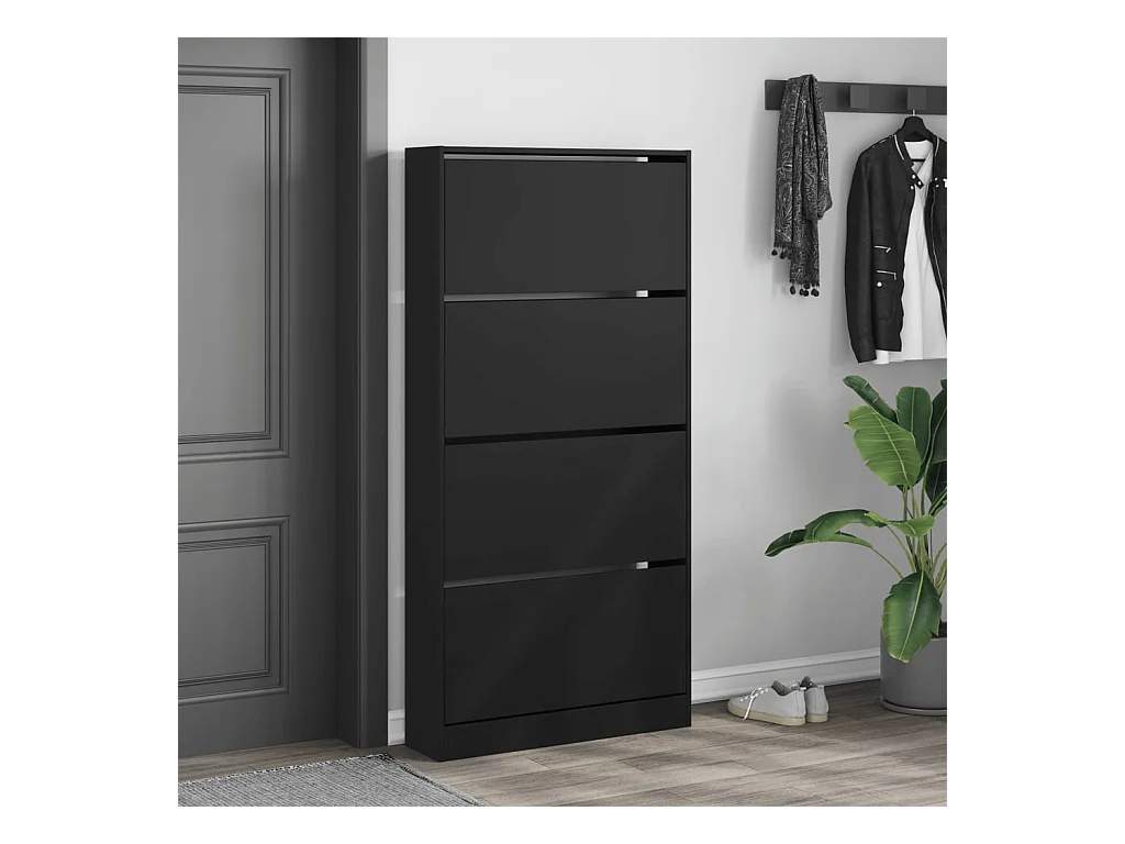 Schuhschrank Schuhregal mit 4 Klappen Schwarz 80x21x163,5 cm -gkd18274