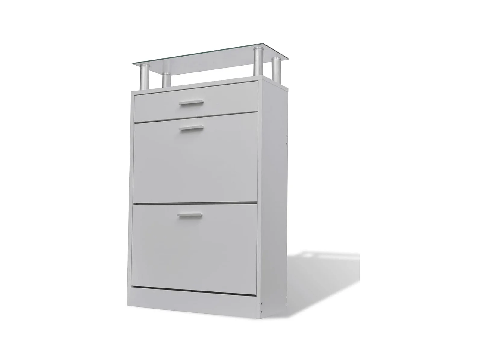 Schuhschrank Schuhregal mit Schubfach und oberem Glasregal Holz Weiß -gkd12006