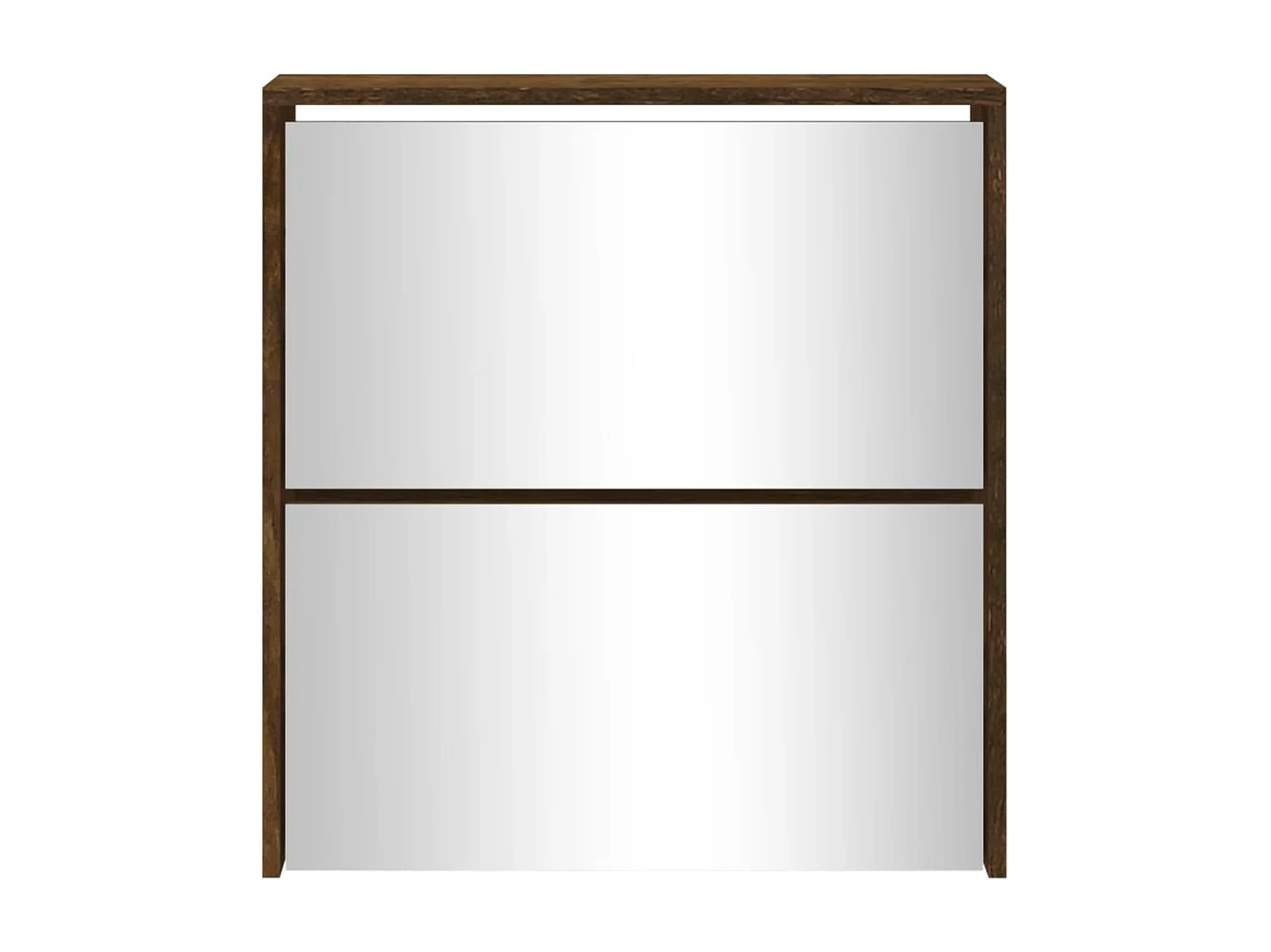 Schuhschrank Schuhregal mit Spiegel 2 Fächer Räuchereiche 63x17x67 cm -gkd38487