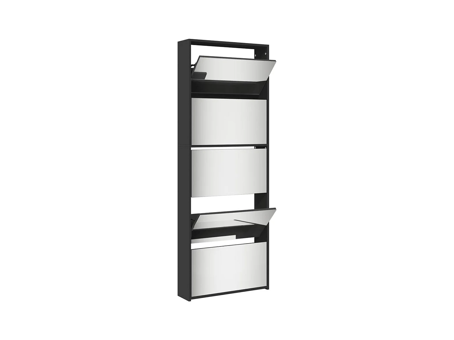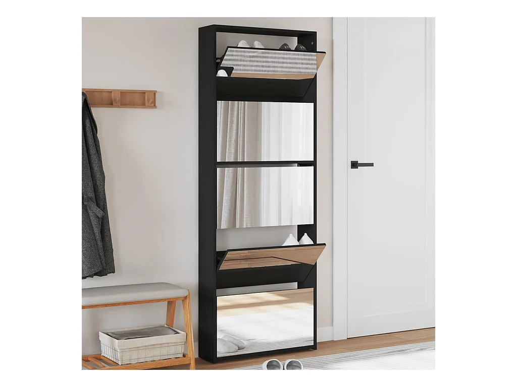 Schuhschrank Schuhregal mit Spiegel 5 Fächer Schwarz 63x17x169,5 cm -gkd47876