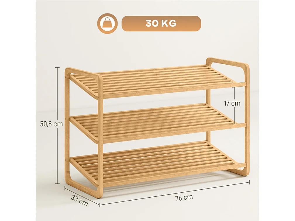 Schuhschränke, Bambusregal, Schuhregal, Flurregal, 3-stufiges Design,Holz 76B x 33T x 50,8H cm