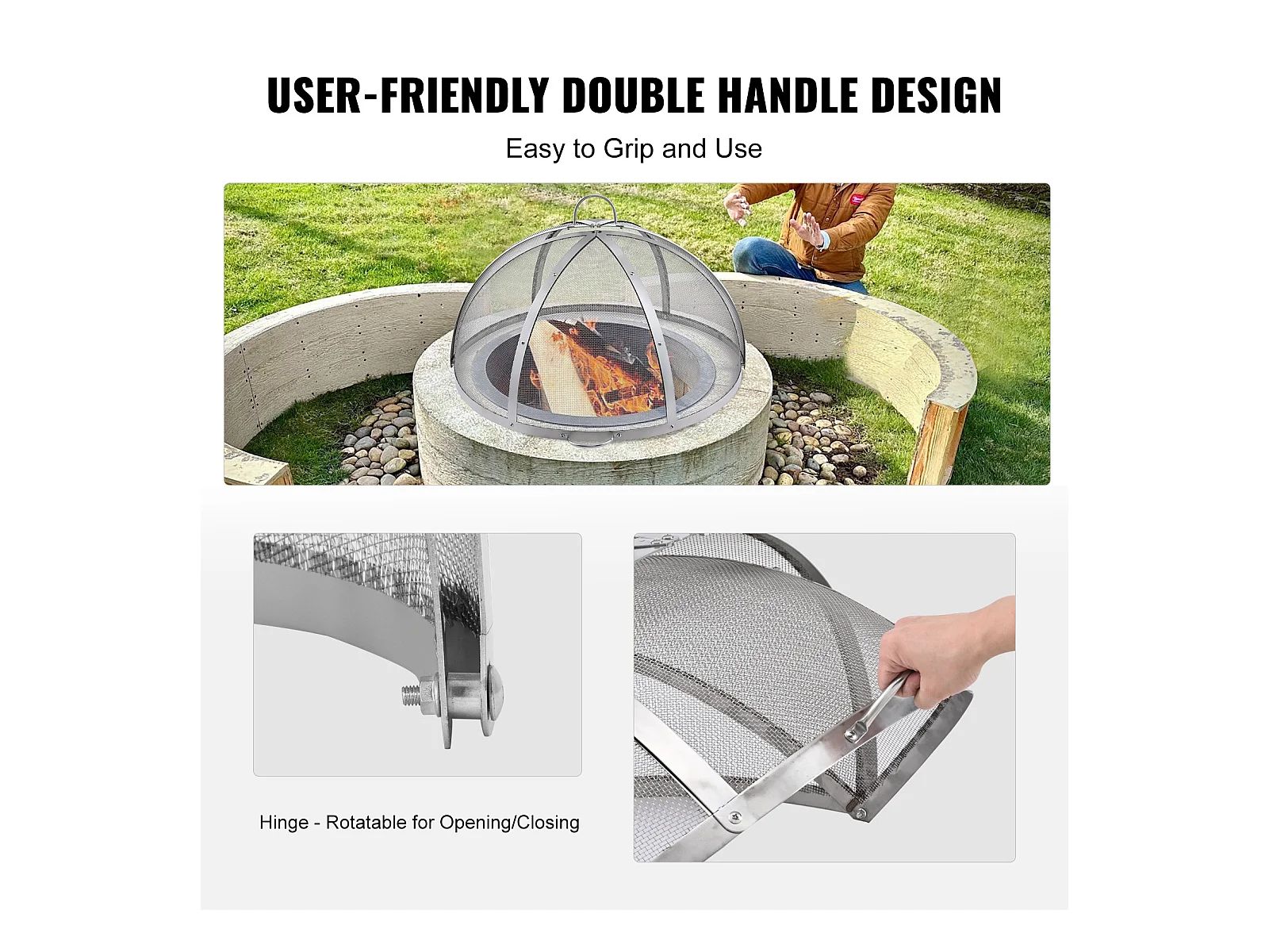 Abdeckung SucceBuy FunkenSchutz für Runde Holz-Feuerstelle von 76.2cm aus Edelstahl, Runde Zubehörteile für Außen-Feuerring