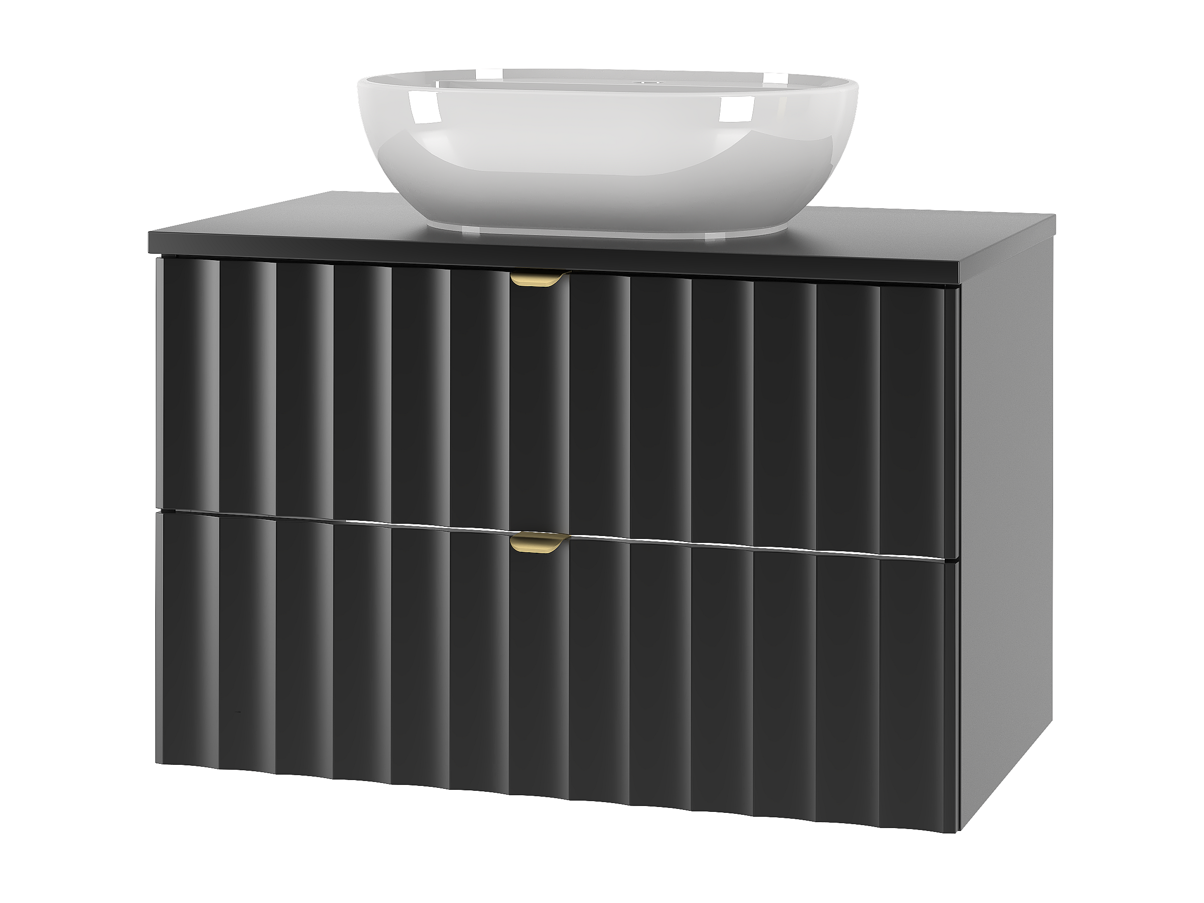 Schwarz Badezimmer Set 80cm Schrank mit Arbeitsplatte und Waschbecken geriffelte Fronten Arcos