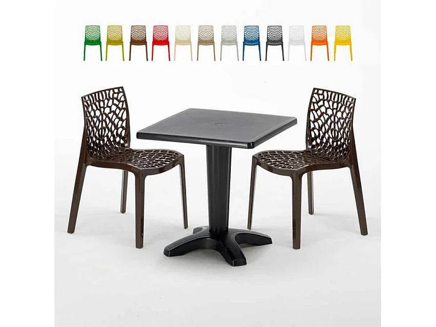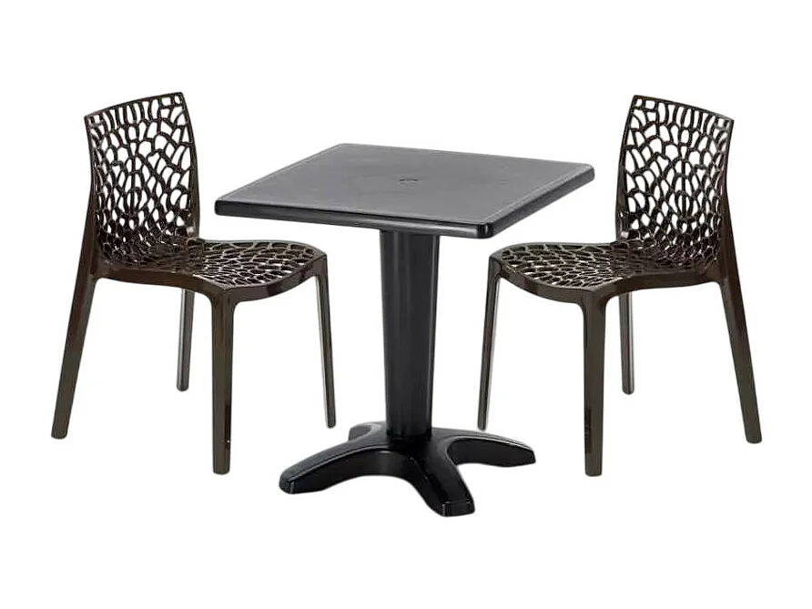 Schwarz Quadratisch Tisch und 2 Stühle Farbiges Polypropylen-Innenmastenset Grand Soleil Gruvyer Aia - Braun