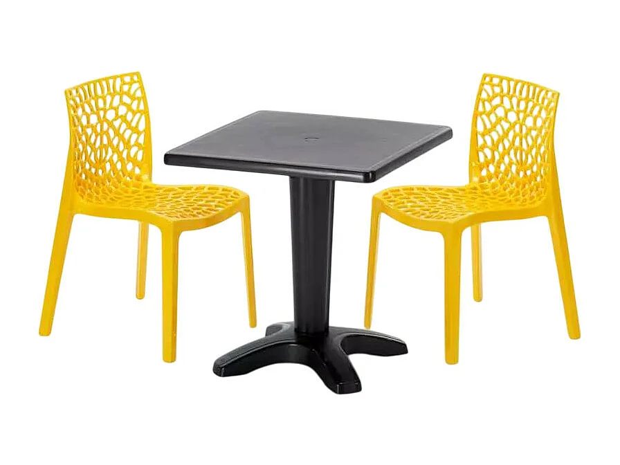 Schwarz Quadratisch Tisch und 2 Stühle Farbiges Polypropylen-Innenmastenset Grand Soleil Gruvyer Aia - Gelb