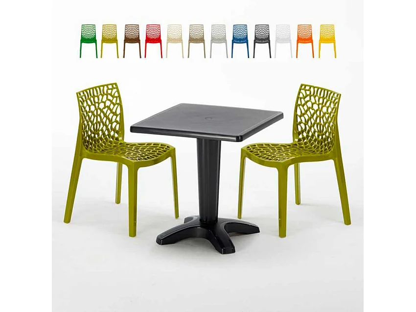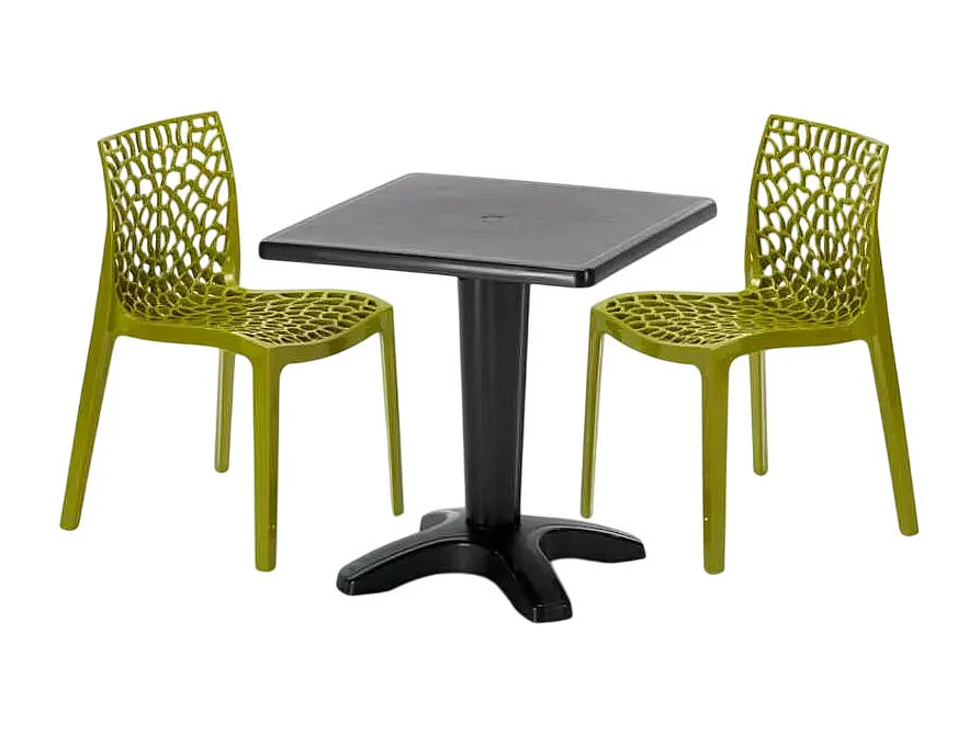 Schwarz Quadratisch Tisch und 2 Stühle Farbiges Polypropylen-Innenmastenset Grand Soleil Gruvyer Aia - Grün Anis