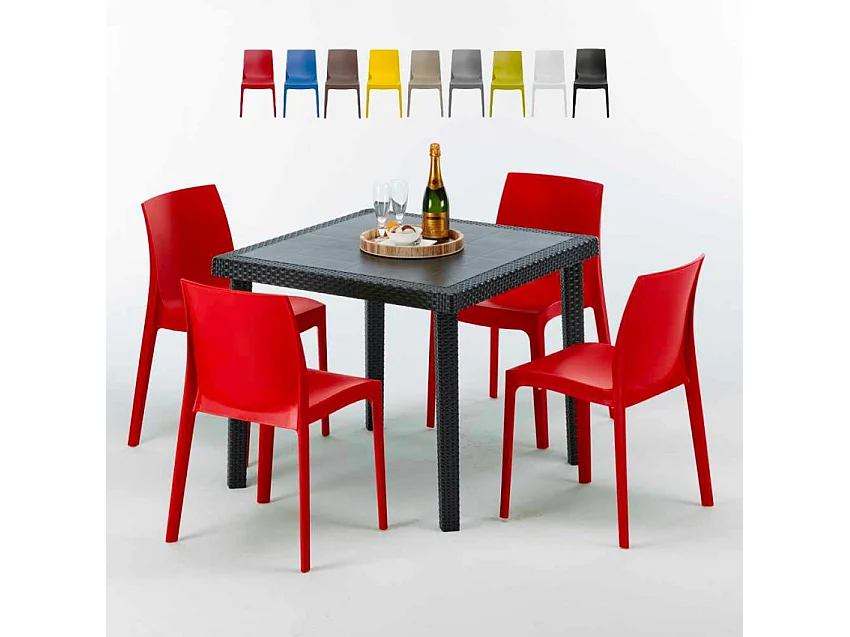 Schwarz Quadratisch Tisch und 4 Stühle Farbiges Polypropylen-Außenmastenset Grand Soleil Rome Passion - Rot