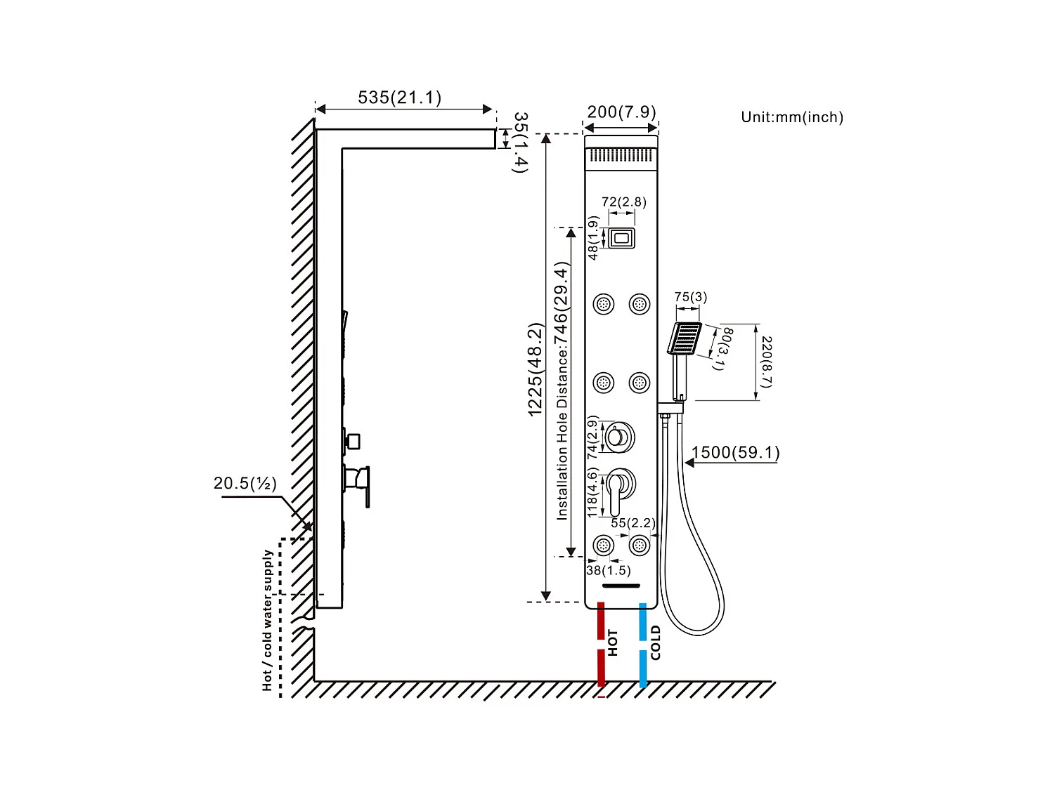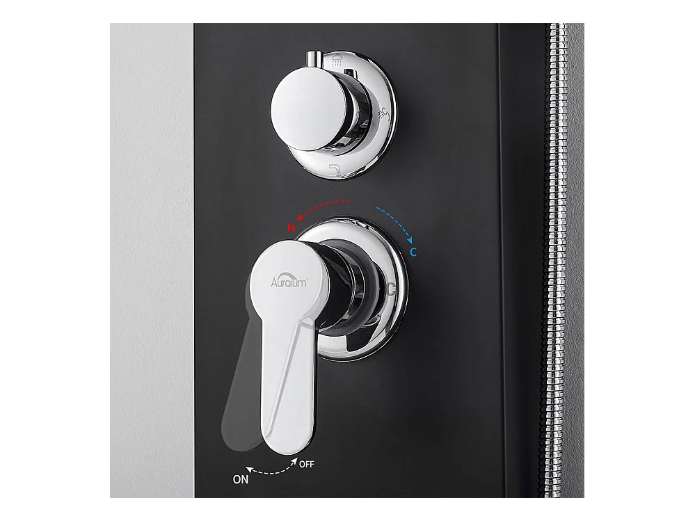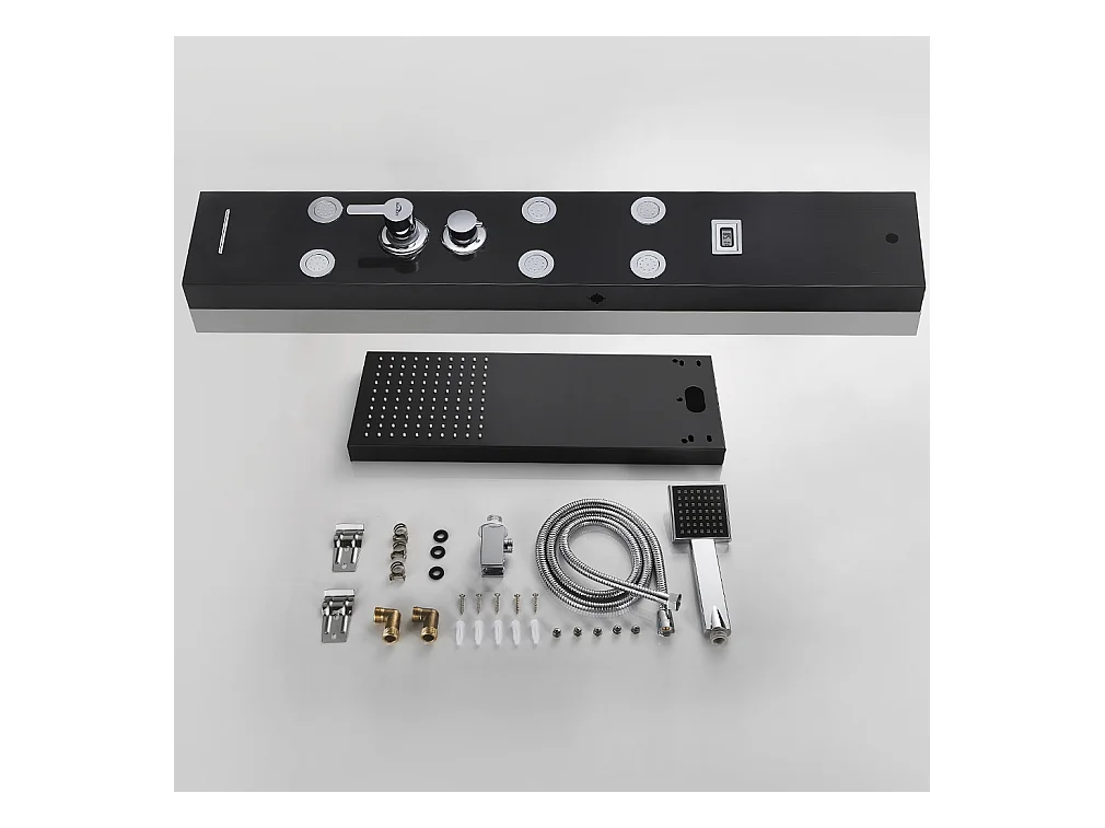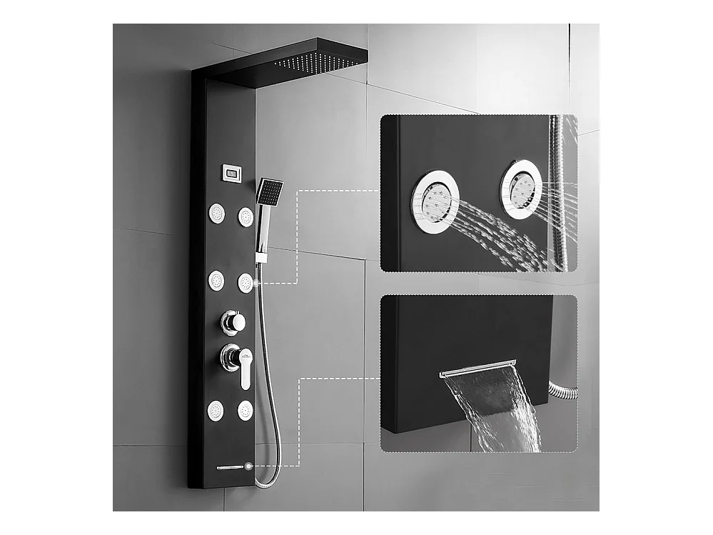 Schwarze Duschsäule, Multifunktions-Duschpaneel aus Edelstahl mit LCD-Bildschirm, Hydromassage-Duschsäule mit Mischbatterie und Massagedüsen