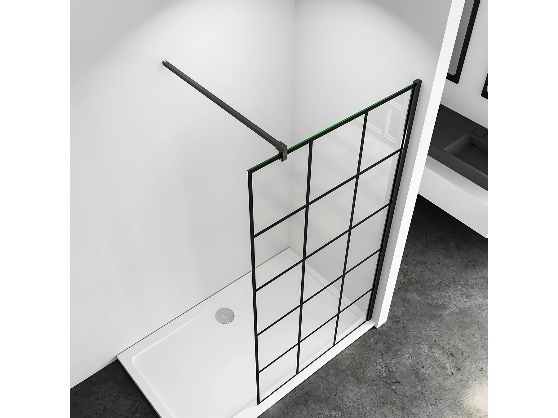 Schwarze Gittermuster FormDuschabtrennung 8mm Nano ESG Duschwand Duschabtrennung + F Form:90cm Stabilisator 90x200cm