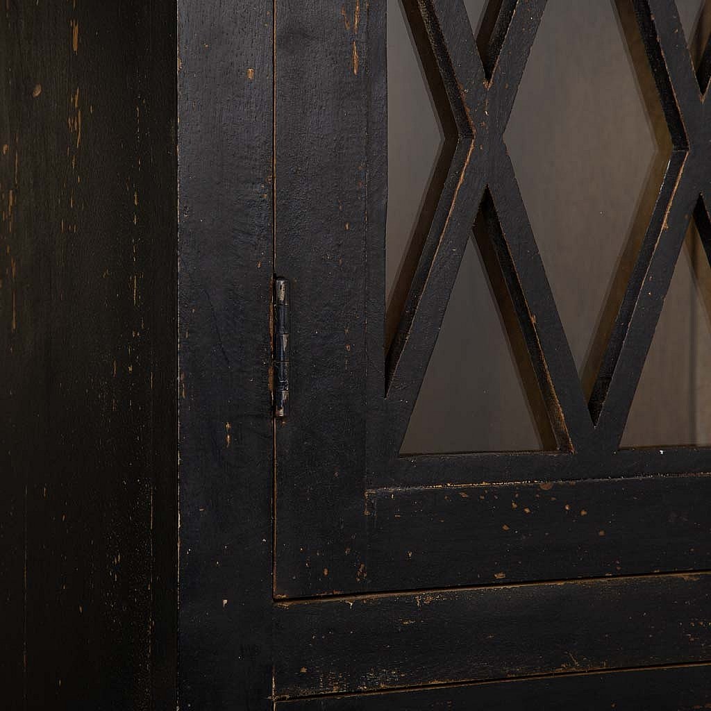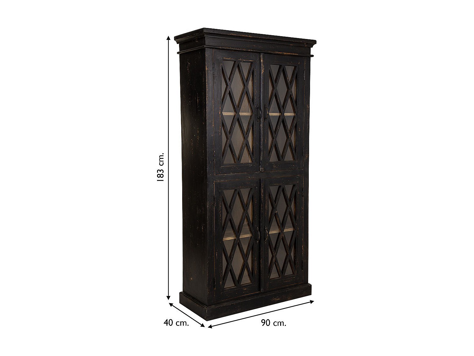 Handgefertigte Vitrine aus Holz und Glas, 90x40x183, schwarz