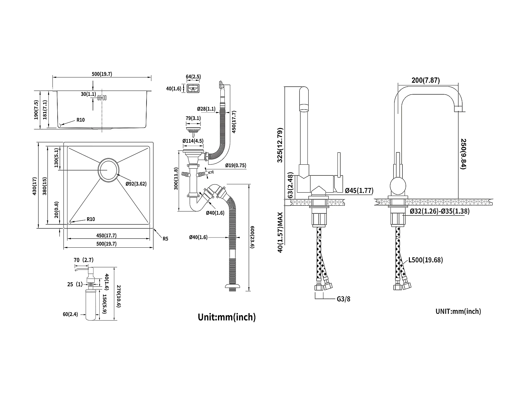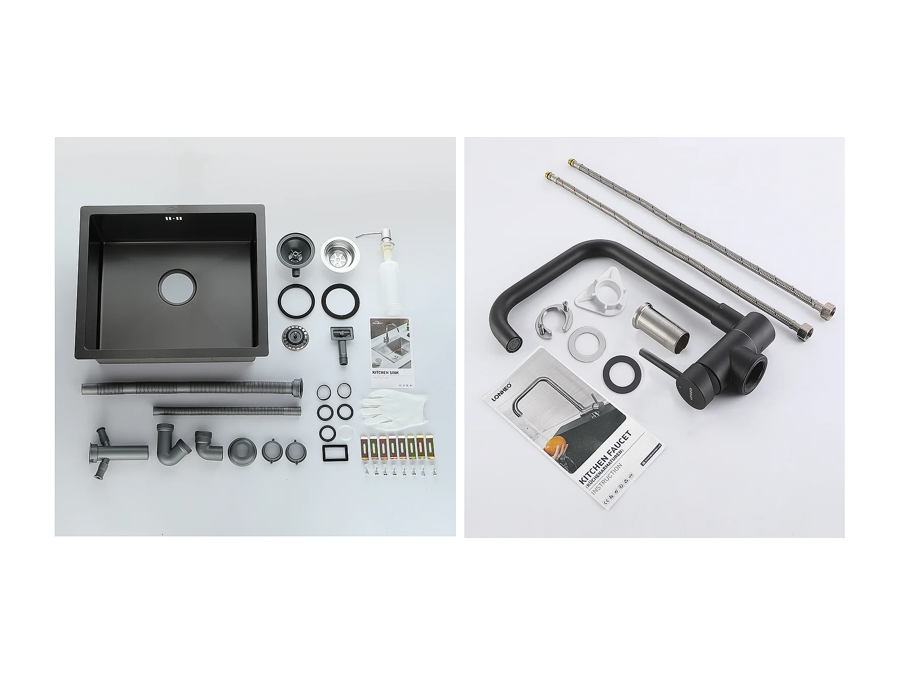 Schwarze Spüle 1 Becken 50x43x18,5CM, Edelstahl, mit Seifenspender++360° schwenkbar, klappbarer Küchenmixer, Kalt-/Warmwasser, Schwarz