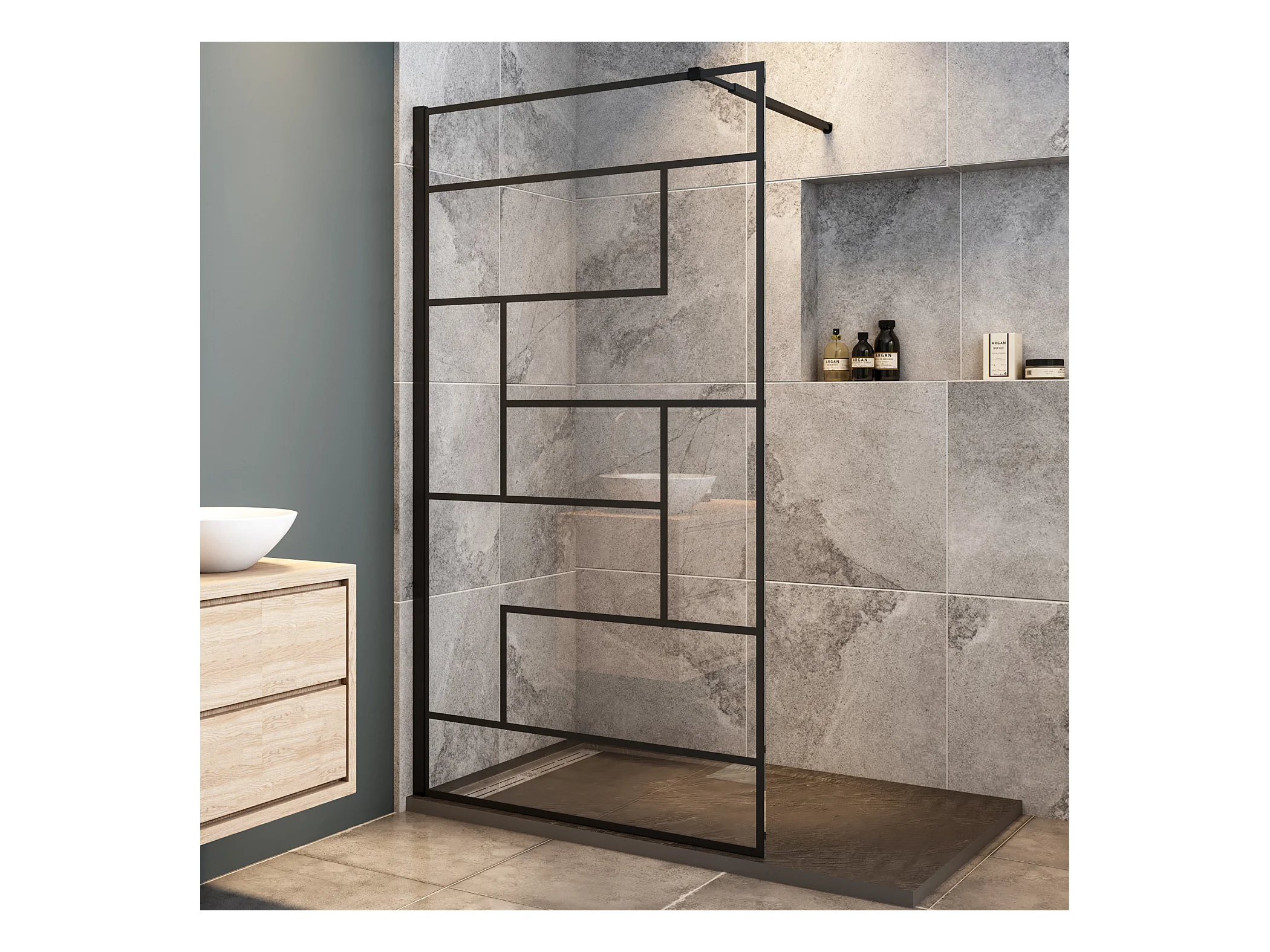Schwarze unregelmäßige FormDuschabtrennung 8mm Nano ESG Duschwand Duschabtrennung + 73-120cm Stabilisator 70x200cm