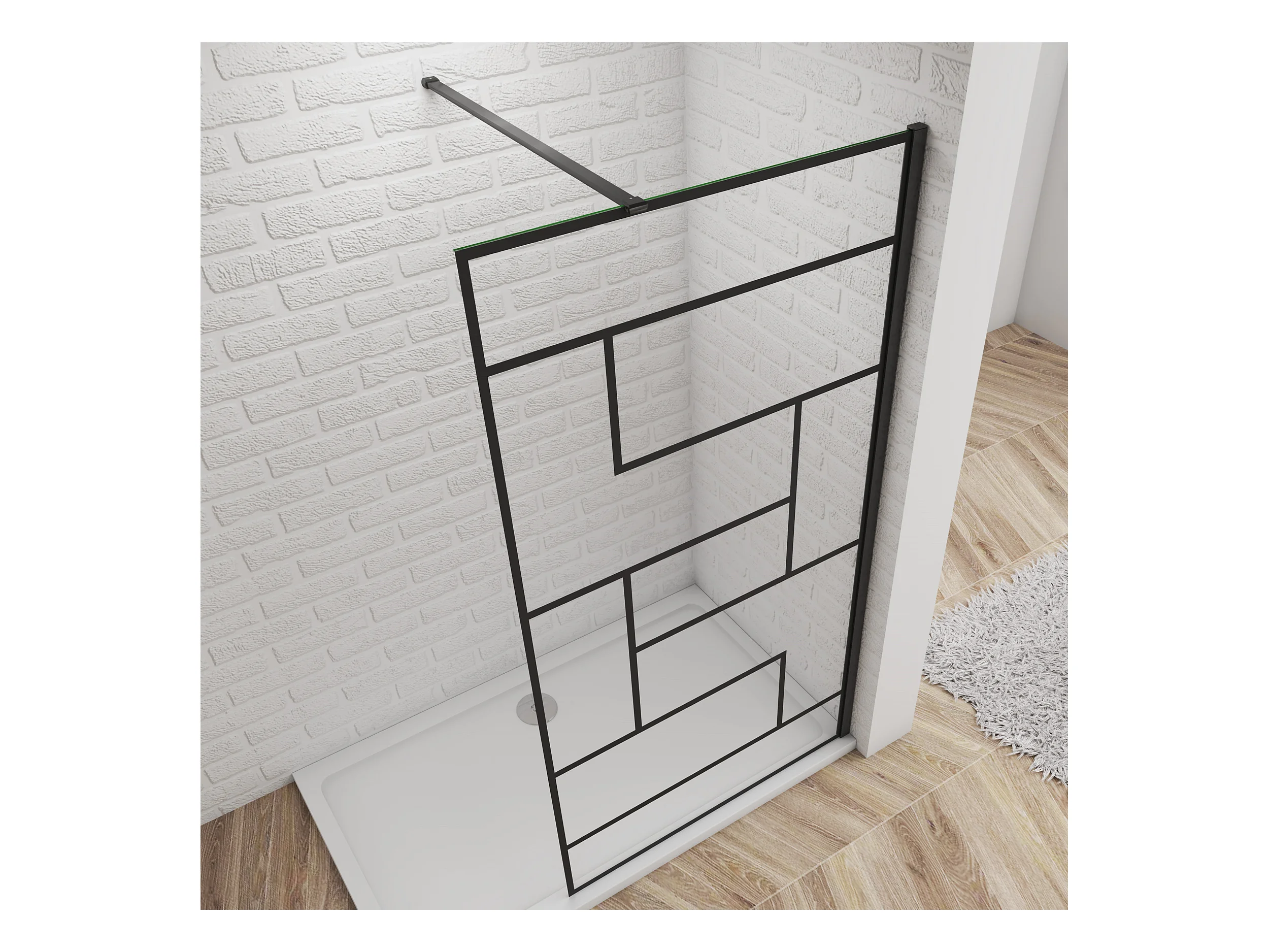 Schwarze unregelmäßige FormDuschabtrennung 8mm Nano ESG Duschwand Duschabtrennung + N Form:90cm Stabilisator 100x200cm