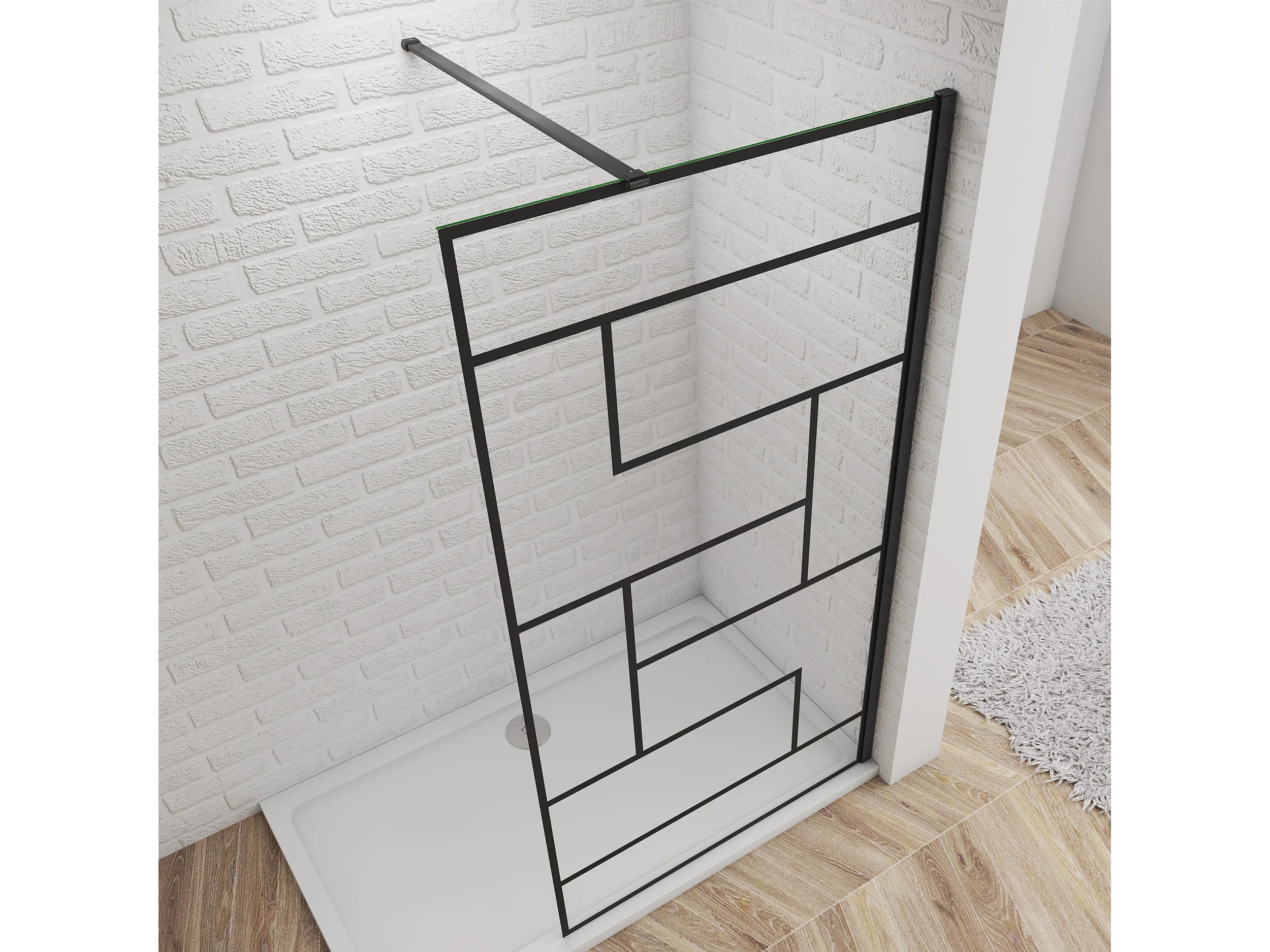Schwarze unregelmäßige FormDuschabtrennung 8mm Nano ESG Duschwand Duschabtrennung + N Form:90cm Stabilisator 80x200cm