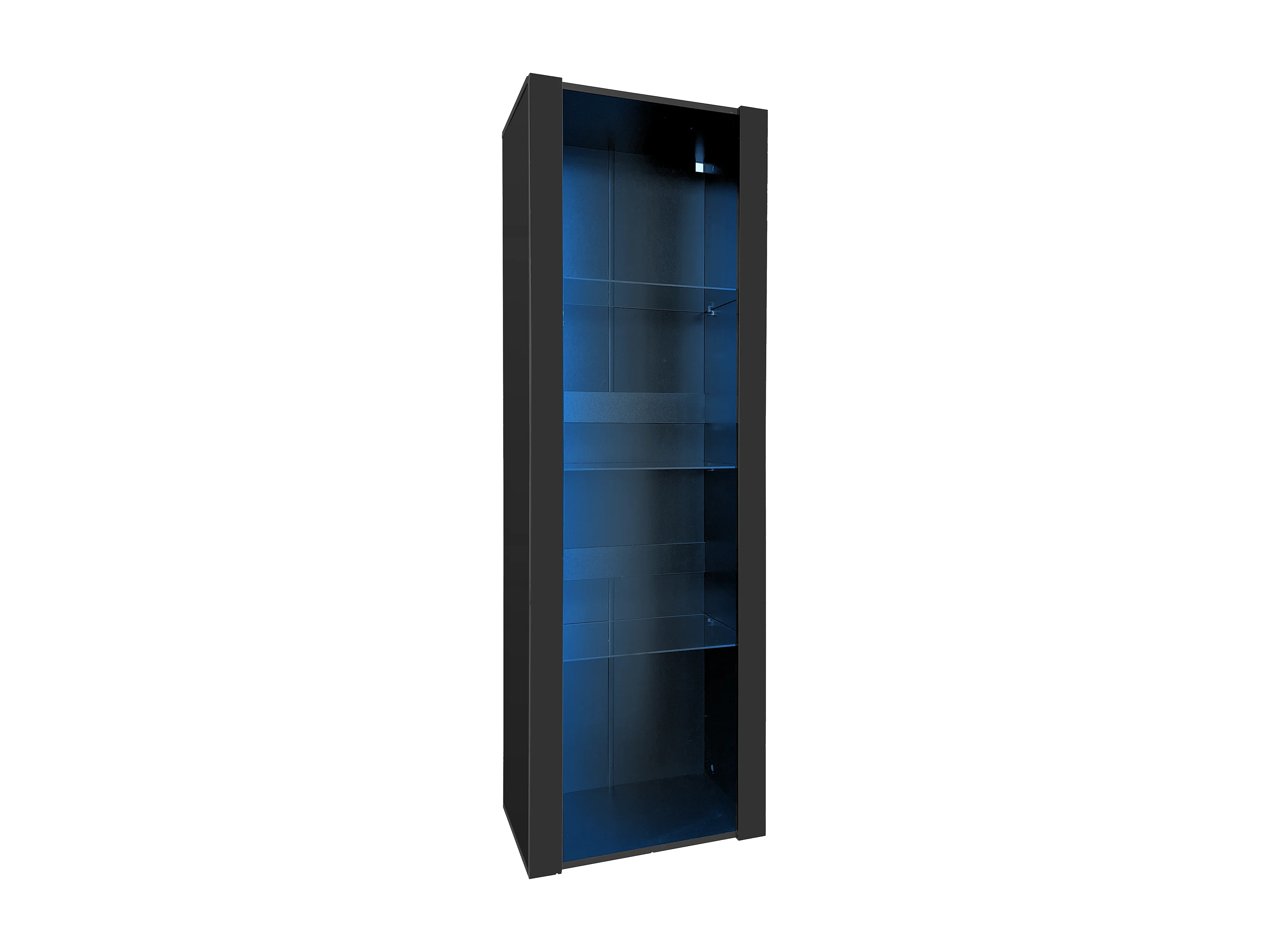 Schwarze Vitrine mit LED-Beleuchtung, 55 x 38 x 166 cm, 3 Fächer, für Wohnzimmer und Büro