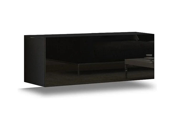 Schwarze Wohnzimmermöbel-Sets aus der Kollektion CEPTO II, 256 cm, mit 6 Türen, 4 Regalen, LED-Beleuchtung, modular.