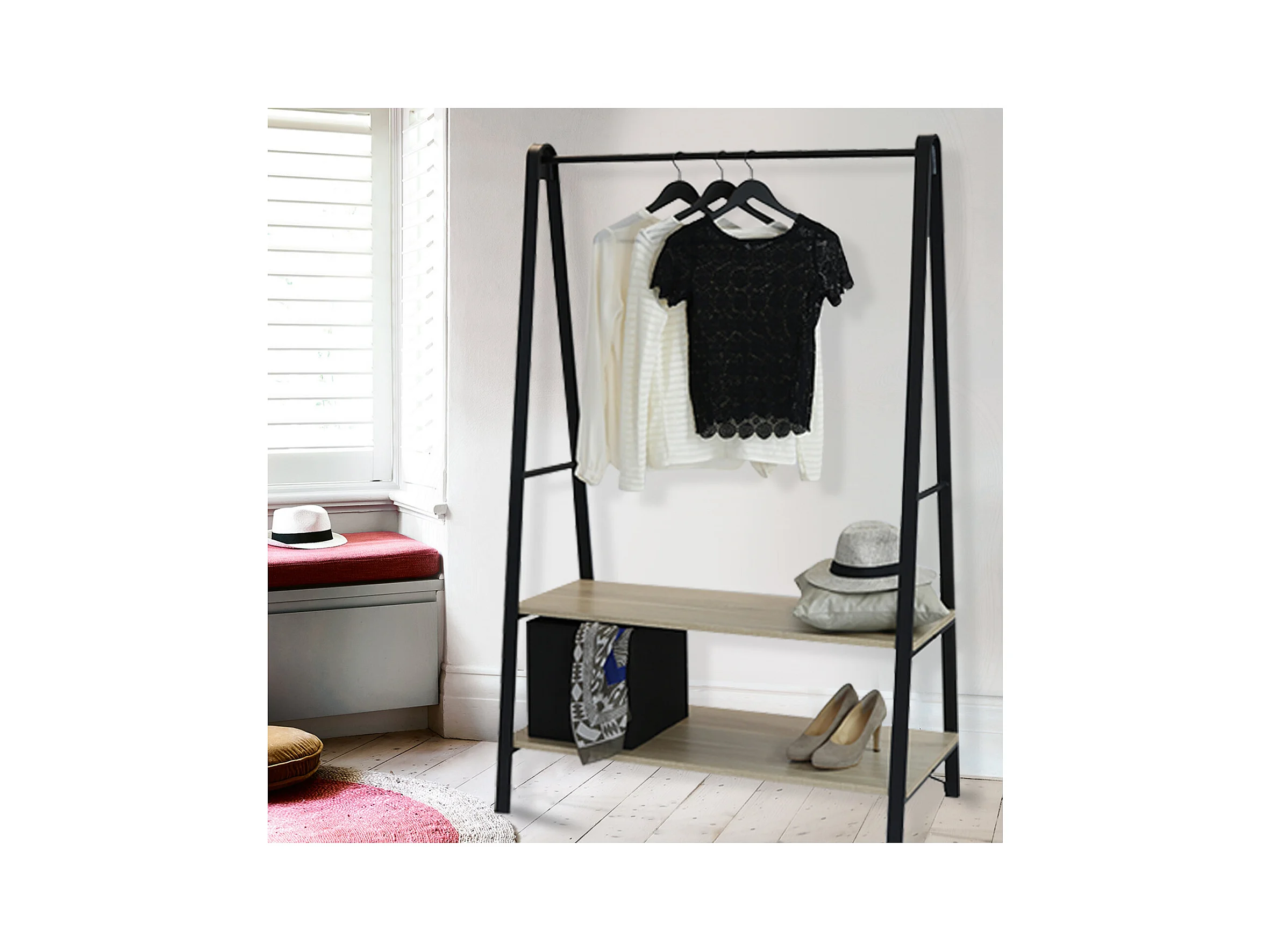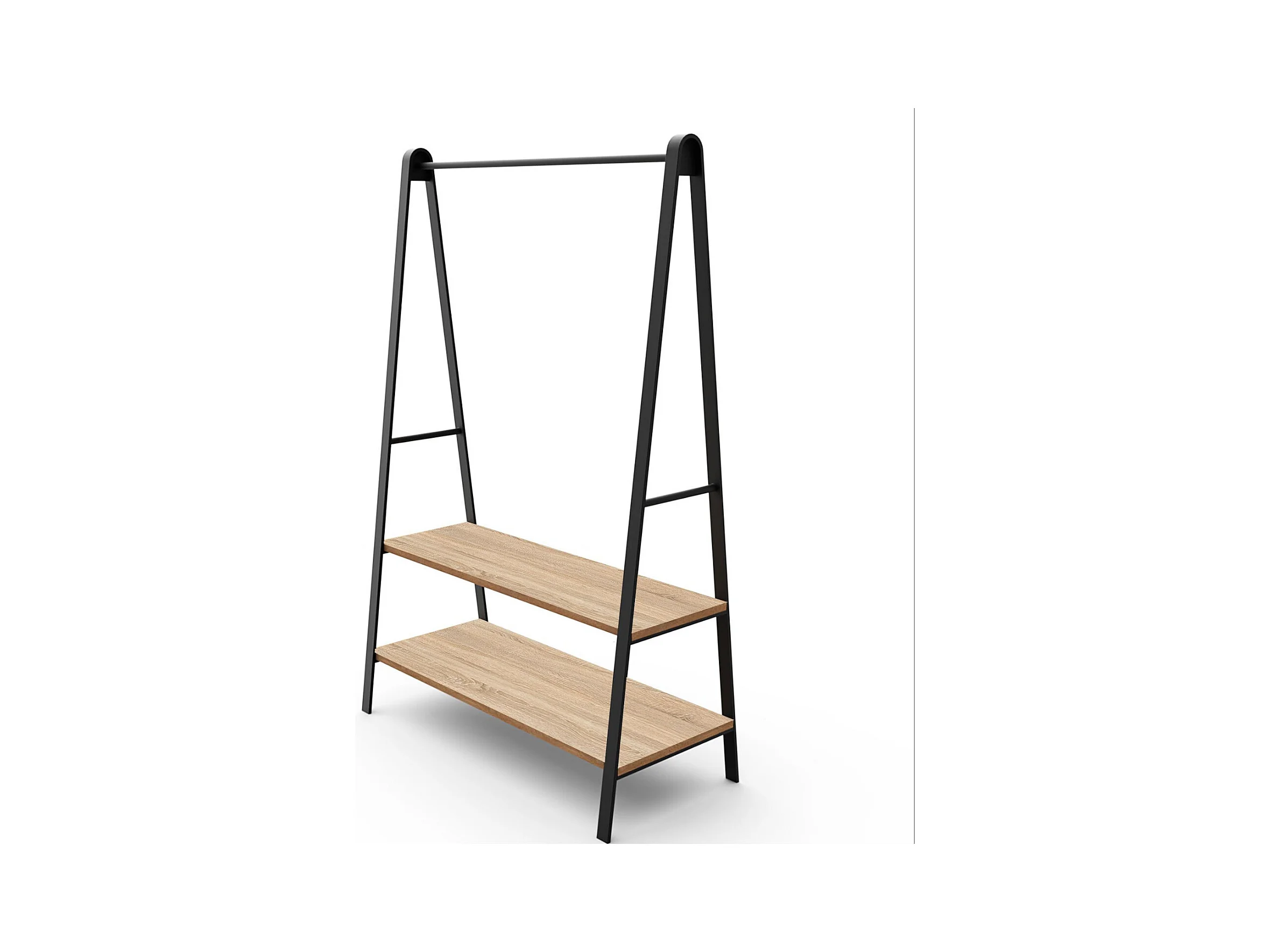 Schwarzer ARCO-Garderobenständer B.110 x H.170 x T.50 cm mit Regalen und Stange