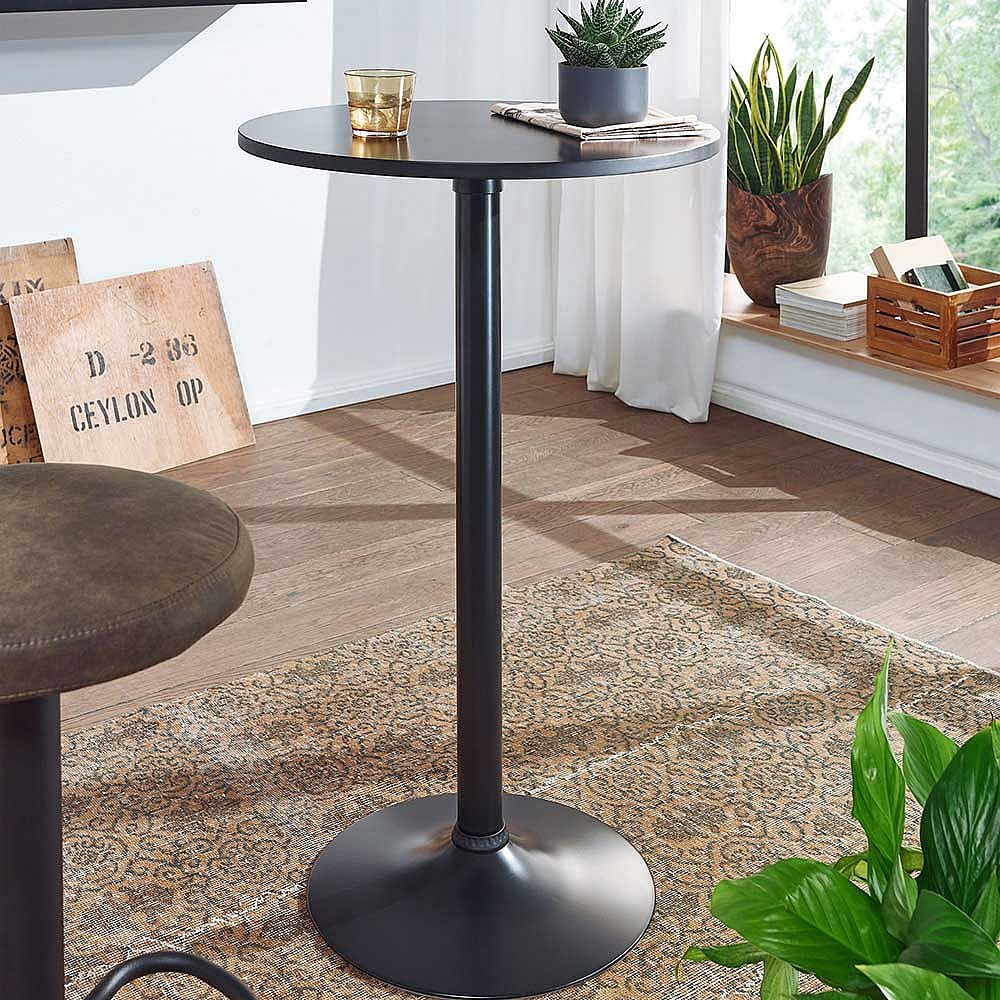Schwarzer Bartisch rund 100 cm hoch Metall Trompetenfuß