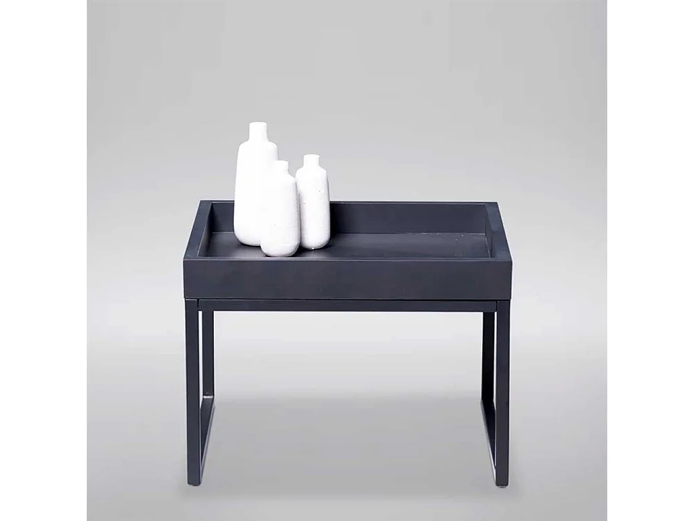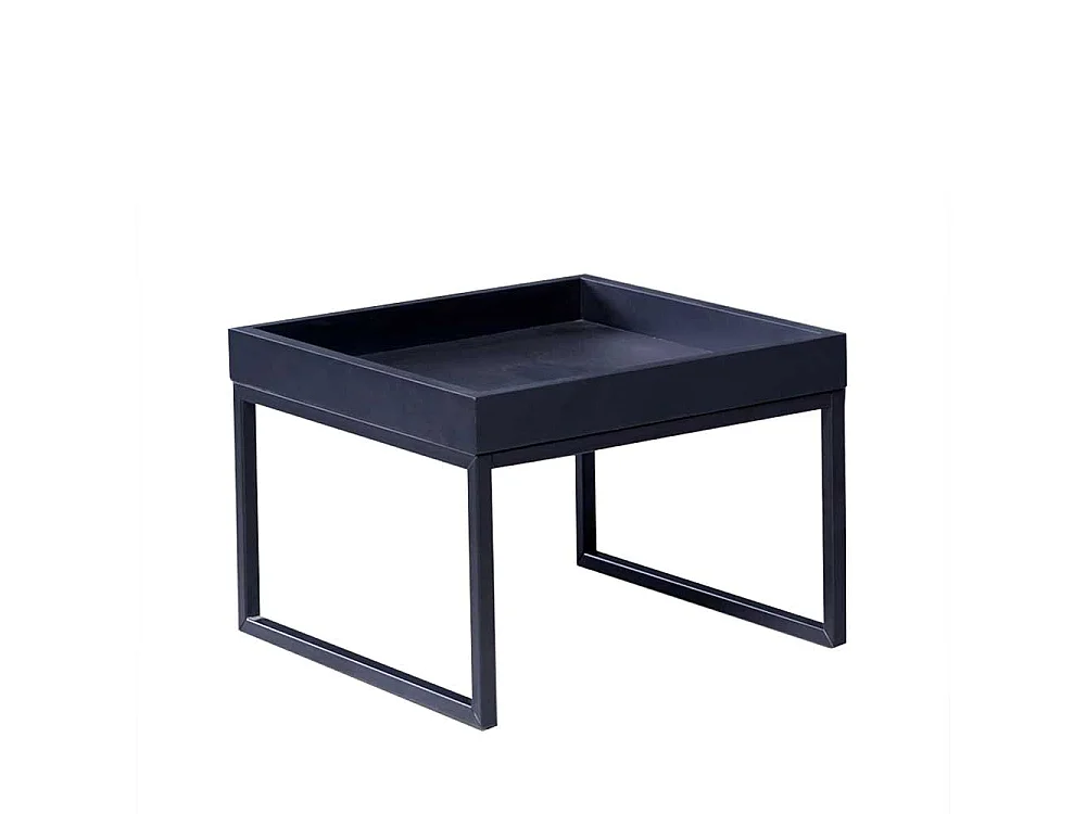 Schwarzer Beistelltisch Tischplatte mit Rand Metall Bügelgestell