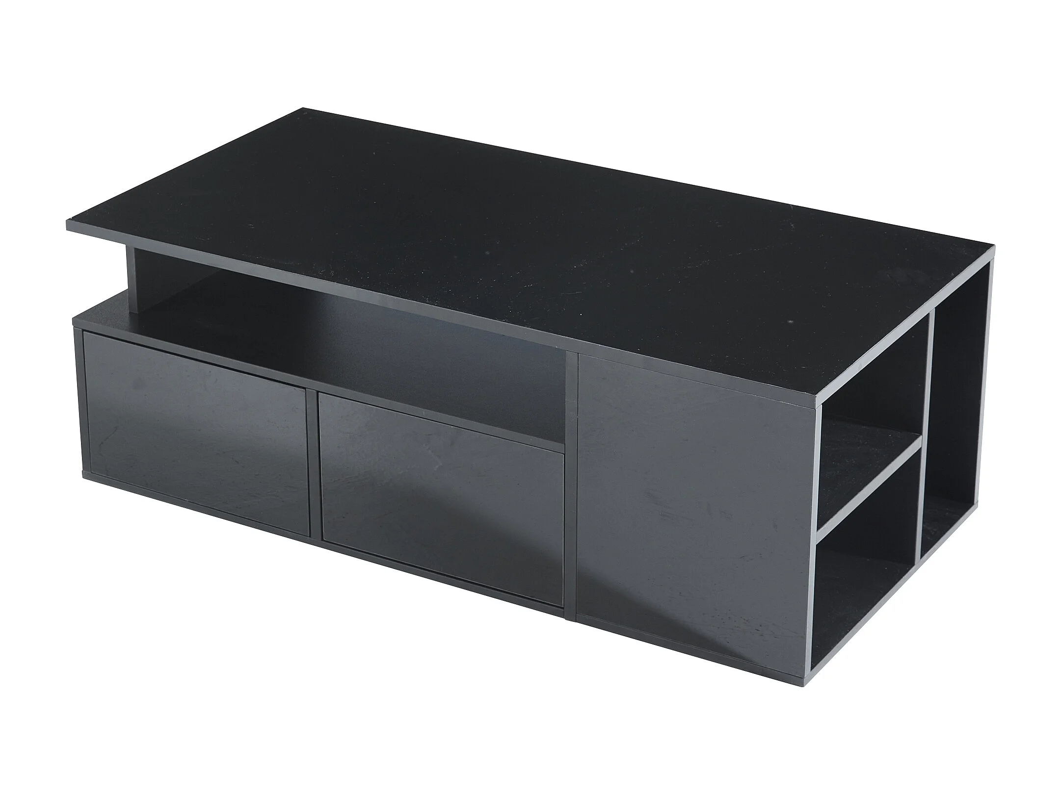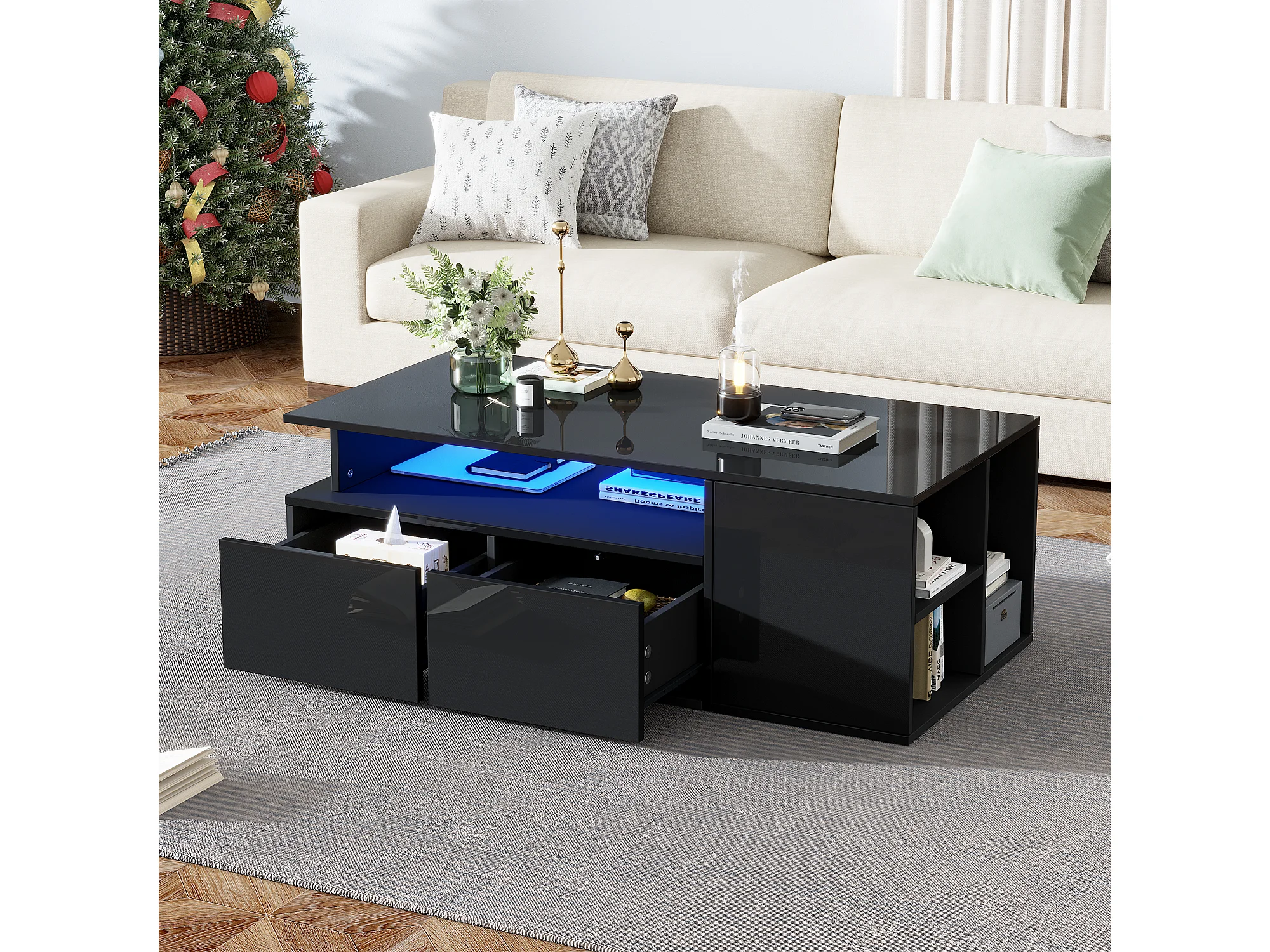 Schwarzer Couchtisch – Couchtisch mit LED-Beleuchtung und 2 Schubladen – offener Stauraum